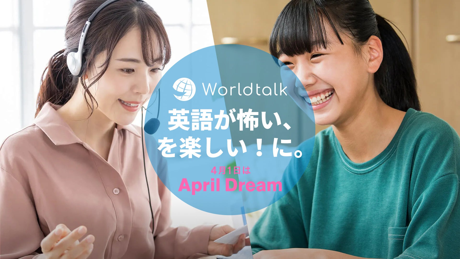 株式会社ライトアップ(所在地:東京都渋谷区 代表取締役社長:白石崇 証券コード:6580) が運営するオンライン英会話サービス「ワールドトーク」は、4月1日を夢を発信する日にしようとするApirl Dreamに賛同しています。このプレスリリースは、「ワールドトーク」の夢です。