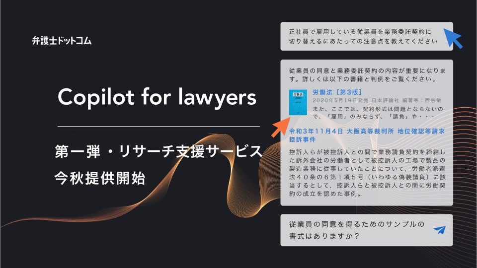 弁護士向け実務サービス「Copilot for lawyers」ロードマップ公開。第一弾は日本初、生成AIを活用した弁護士向けリサーチ支援サービス(α版)※1を今秋より提供開始