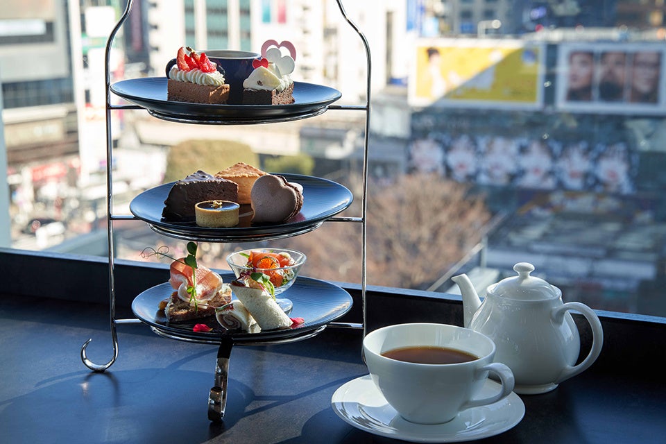 同店では、渋谷の街並みを眺めながら四季の移り変わりを感じていただきつつ、旬の食材を味わうアフタヌーンティーを展開し、お客さまから好評をいただいております。今回は、甘くほろ苦いチョコレートにときめくこの季節、さまざまなチョコレートスイーツを心ゆくまで味わえる内容でご用意いたしました。セイボリーとのコンビネーションを楽しみながら、パートナーとはもちろん、ご友人と優雅なティータイムをお過ごしください。