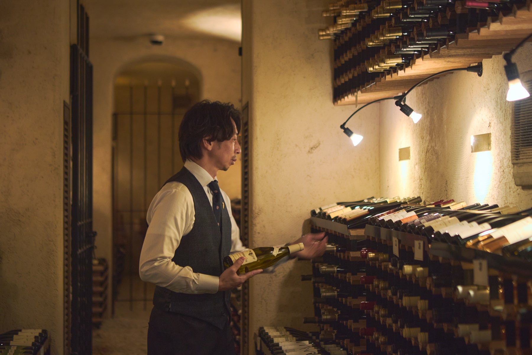 温度・湿度が徹底管理された約4,000本を収蔵するワインセラーでは、その日のお食事、お客様のお好みに合わせて、ソムリエがあなただけの一本をセレクトいたします。5,000円台から高品質なワインをお楽しみいただけます。生まれ年や記念の年のワインもお気軽にご相談ください。