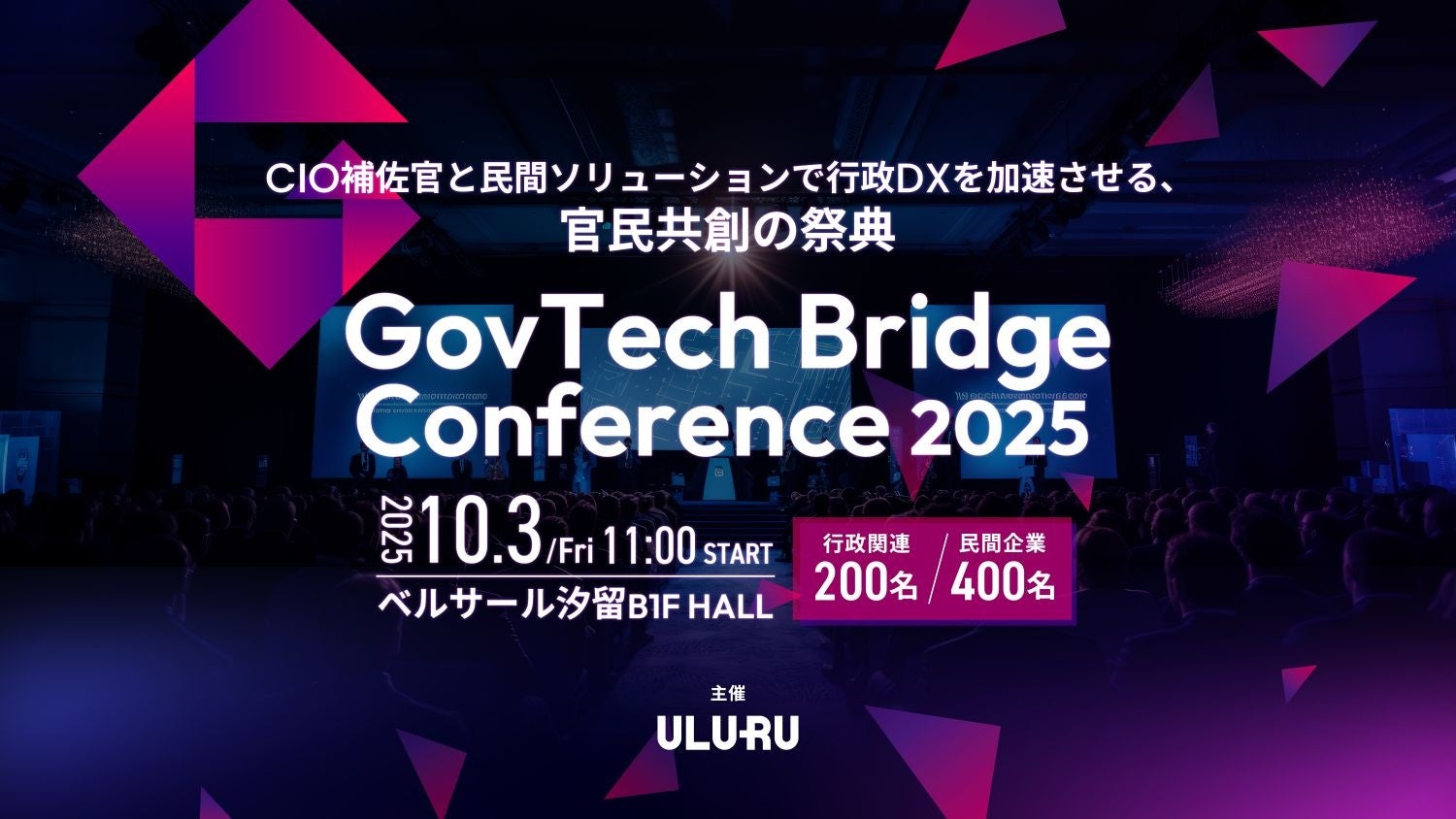 労働力不足問題解決のリーディングカンパニーとして、複数のSaaSを展開する株式会社うるる(東京都中央区 代表取締役社長:星 知也、以下「うるる」)は、2025年10月3日(金)に東京・汐留で開催する「GovTech Bridge Conference 2025 〜CIO補佐官と民間ソリューションで行政DXを加速させる、官民共創の祭典〜」の一般申し込みの受付を開始いたしました。また本日、「GovTech Bridge Conference 2025」のスポンサー企業の第二弾を発表いたします。