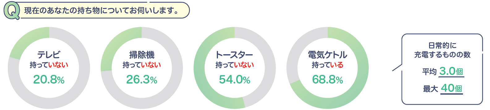 一人暮らしのZ世代のうち、約2割が「テレビ」を持っていないことが分かりました。また、4人に1人が「掃除機」を持っておらず、粘着式クリーナーやモップ等で代用しているようです。