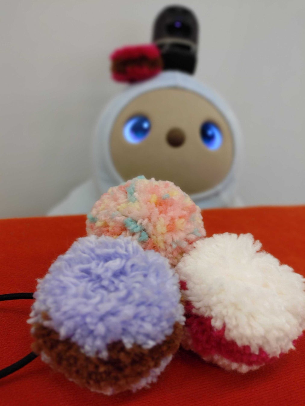 2月14日(金)のバレンタインに合わせて、バレンタインコーディネートに身を包んだ『LOVOT』のホーンを飾るアクセサリー「ポンポンマカロン」のワークショップを開催!人気急上昇の毛糸を使った丸くてかわいらしいポンポンが、美味しそうなマカロン型に!LOVOTのお迎えを検討中の方もお楽しみいただけるアイテムです!