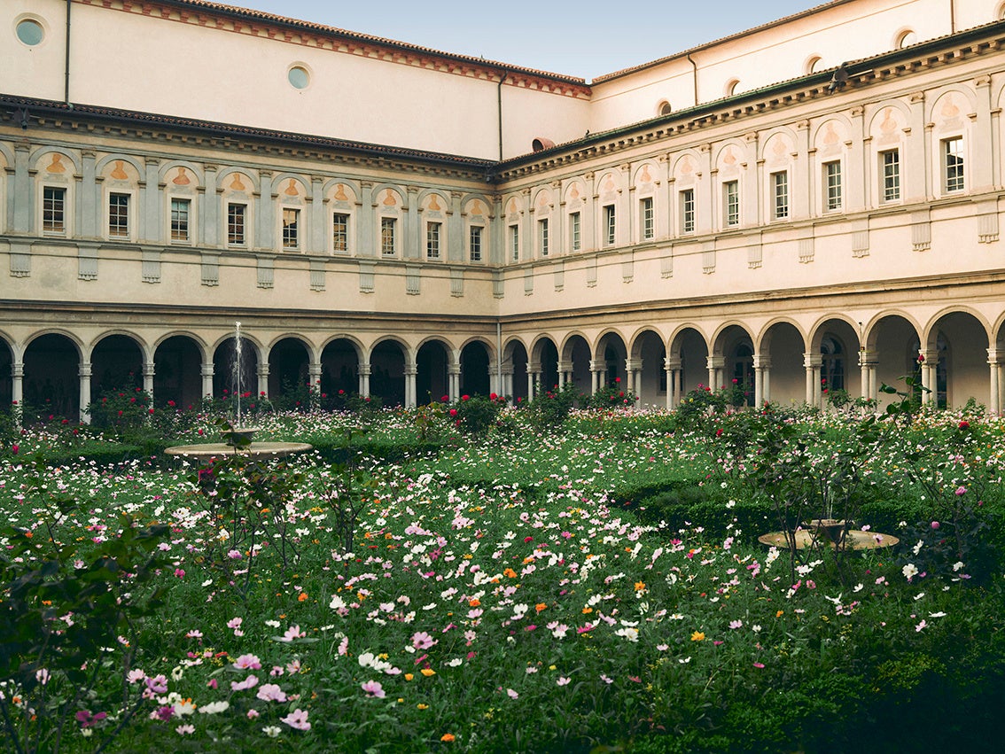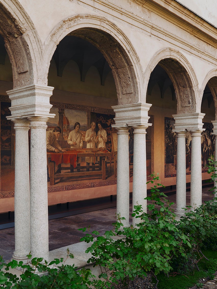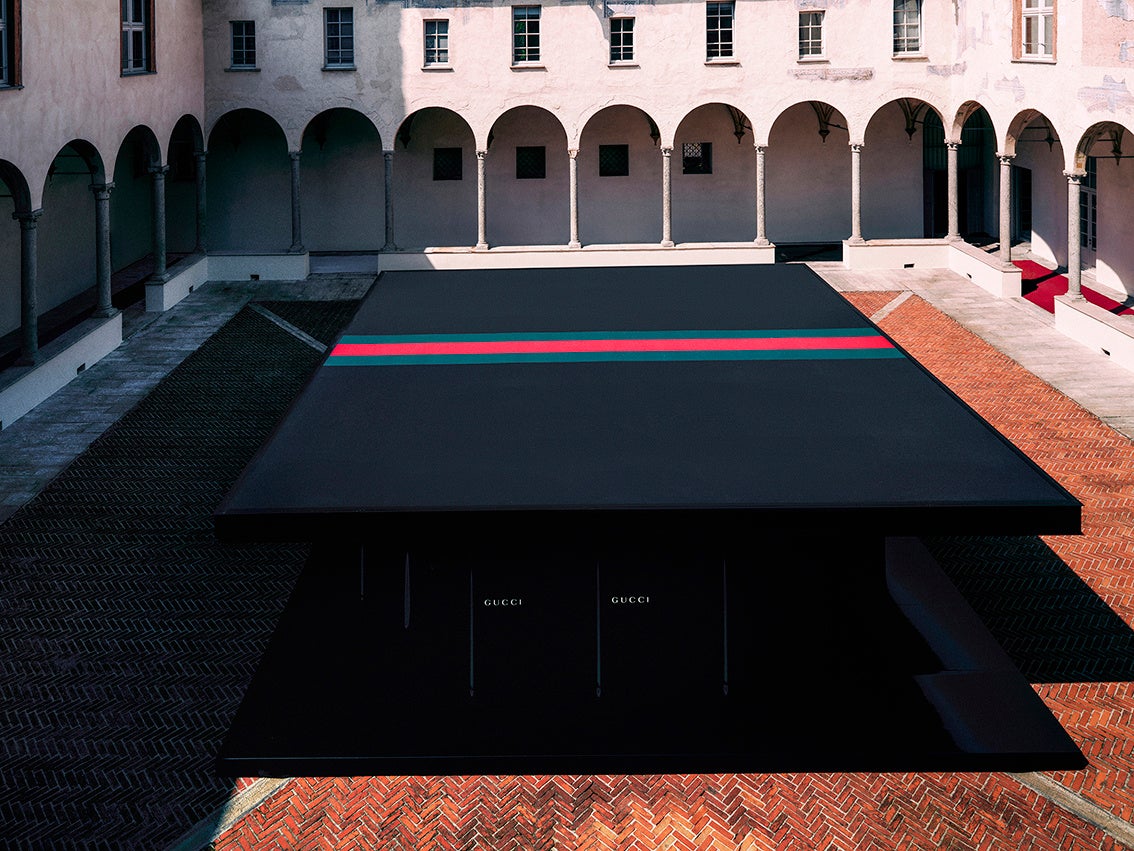 大回廊の中庭では、ブランドを象徴するフローラ プリントを立体的な空間へと再構築したインスタレーションを展開します。1966年にヴィットリオ・アッコルネロがデザインしたオリジナルのフローラ プリントは、四季折々の花々やベリー、蝶、昆虫を37色で表現しています。1色ずつを丁寧に重ねて完成するシルクスカーフは、グッチの卓越したクラフツマンシップを体現しています。フローラ プリントはグッチの豊かなインスピレーション源として、時代とともに繰り返し再解釈されてきました。没入型ランドスケープとして広がり、記憶と再創造の物語にさらなる奥行きをもたらします。