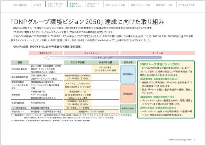 DNPは、常に事業活動と地球環境の共生を考え、環境問題への対応を重要な経営課題の一つに位置付けています。気候変動をはじめとするさまざまな課題の解決に取り組み、人々の期待に応える「DNPならではの価値」を提供していくことで、生活の基盤を持続可能で安全・安心なものにしていきます。また、これらの取り組みに関する情報開示をより充実させて、あらゆるステークホルダーとの対話をさらに積極的に進めていきます。