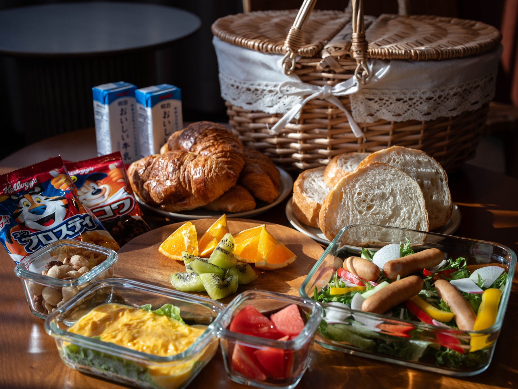 まるでピクニックのようなご朝食をインルームダイニングでご用意しています。午前7時30分~午前9時30分の間に、ホテルフロントにてお受け取りいただき、お部屋でごゆっくりお楽しみください。