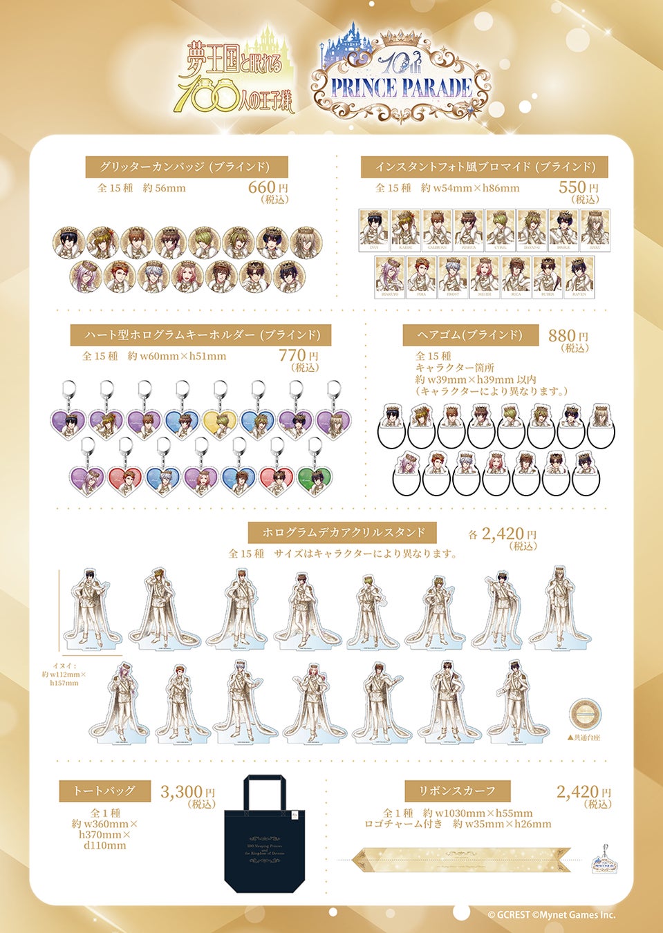 今回のイベントでは、「夢王国と眠れる100人の王子様」10thプリンスパレードの新作グッズを販売いたします。