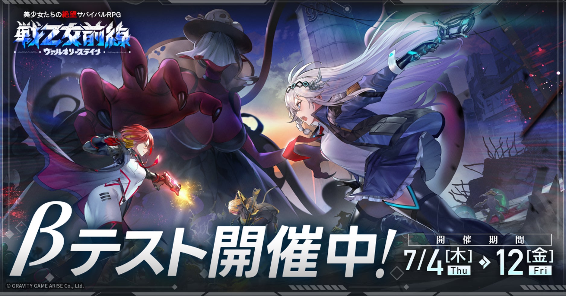 グラビティゲームアライズ株式会社(所在地:東京都中央区)は、スマートフォン向け新作RPG『戦乙女前線 -ヴァルキリーズライン-』のβテストを、2024年7月4日(木)よりGoogle Play ストアにて開始したことをお知らせいたします。