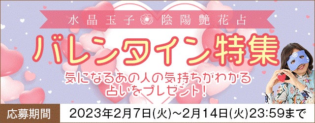 テレシスネットワーク株式会社(本社:東京都港区、代表取締役:鷹石惠充)は、2023年2月7日(火)より、月額公式サイト『水晶玉子 陰陽艶花占』にて『バレンタイン特集』を公開いたしました。