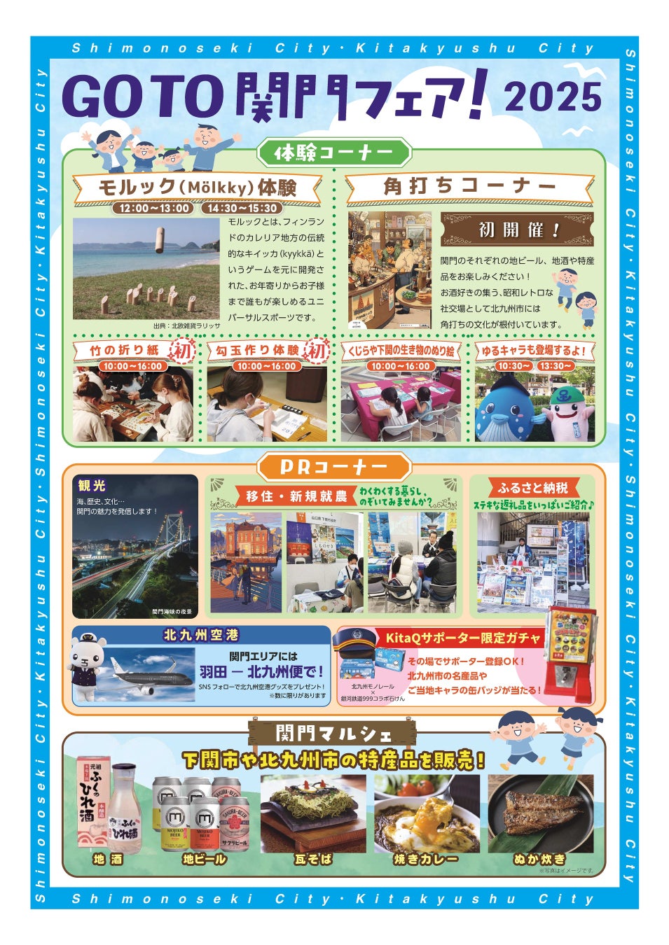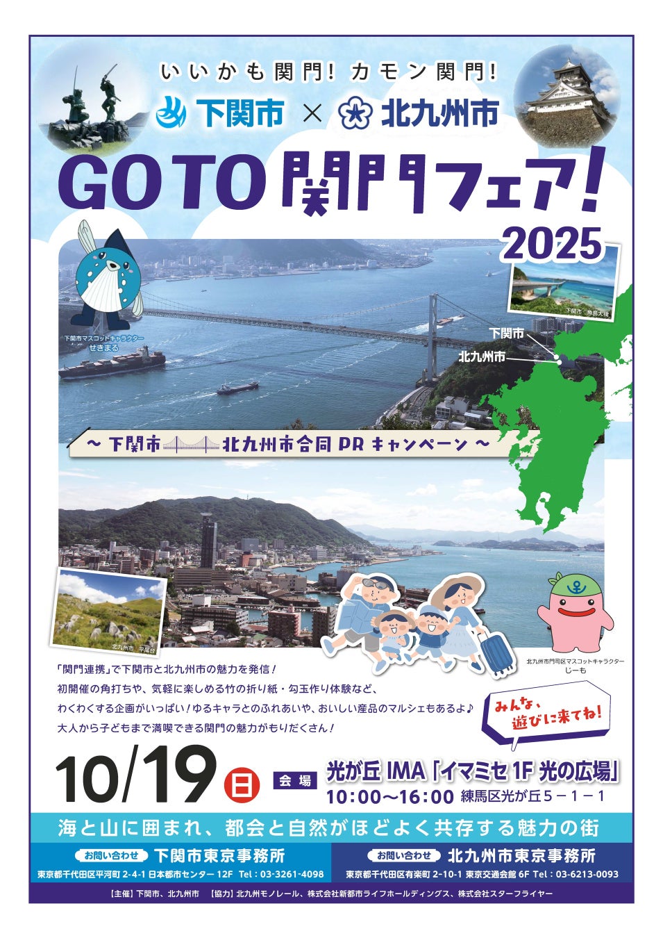 北九州市と下関市が、東京都練馬区において「GoTo関門フェア!2025」を共催し、観光、移住、ふるさと納税、マルシェ等を通して、関門地域の多様な魅力を発信します。