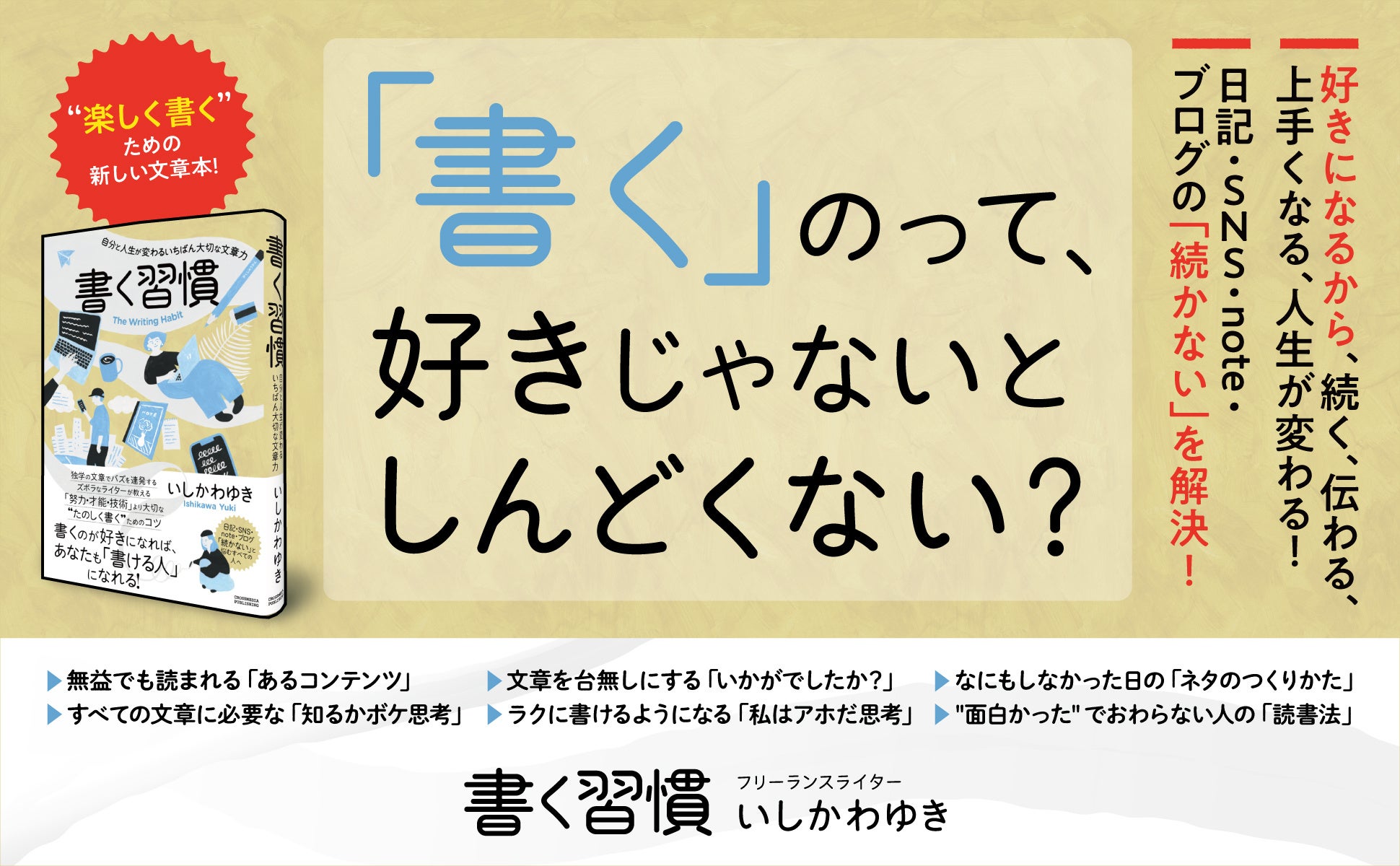 「習慣」は、身につけば人生を変えるほどの強い力を持ちますが、そのぶん、簡単に定着することではありません。書くネタがなくなったとき、書くのがつらくなったとき、自分らしい文章が書けなくなったとき、ふと思い出して、見返してみましょう。きっと、あなたをまた「書く」ことに向き合わせてくれるはずです。