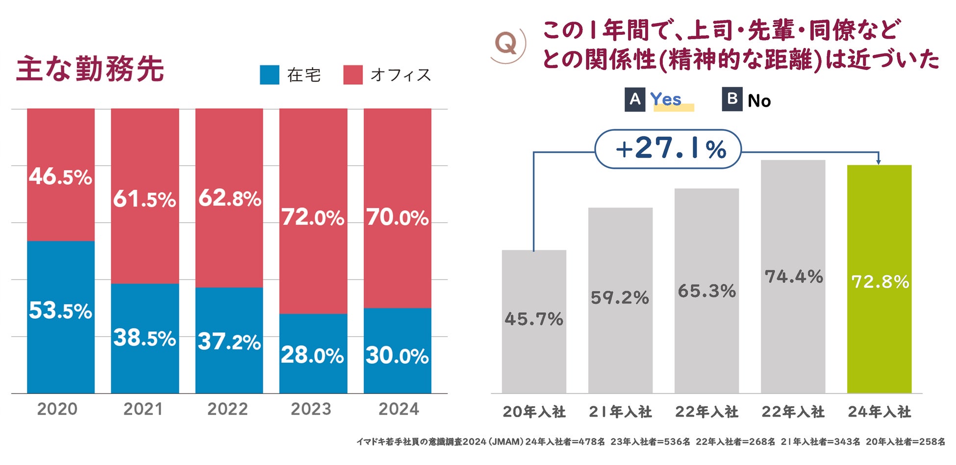出社率が70%まで高まり、職場の人間関係の重要性を強調する回答が増加