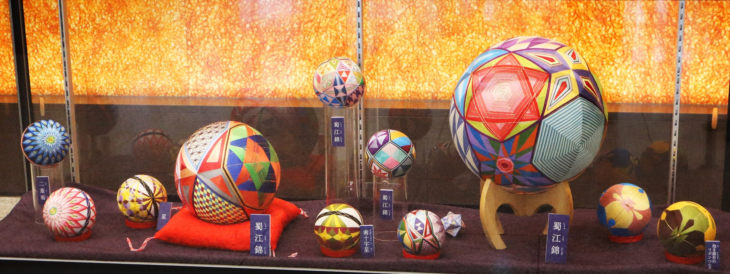 今回は、巧の技をつなぐ「紀州てまり工房・さゆ紀」様の協力をいただき、約2か月間を2回に分けて「紀州てまり」の魅力を発信いたします。前半は伝統的な模様のてまりを展示し、後半は伝統を生かしつつ、当世風の感覚を取り入れた近年の模様のてまりを展示いたします。