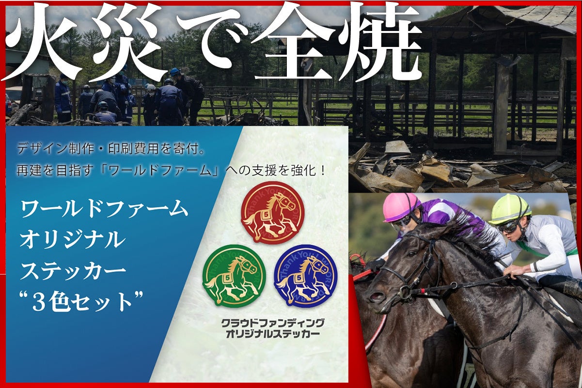 株式会社ファーストイノベーション(本社:東京都中央区、代表取締役社長:木ノ根雄志、以下ファーストイノベーション)は、火災で厩舎等を焼失した競走馬牧場「ワールドファーム」再建に向けたクラウドファンディングにおいて、限定オリジナルステッカーのデザイン制作および印刷費用を“寄付”という形で無償提供したことをお知らせいたします。