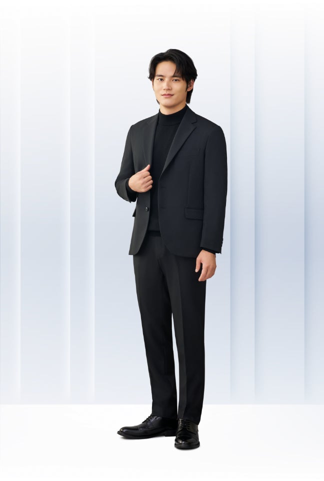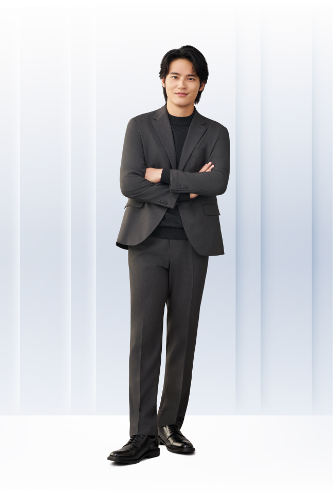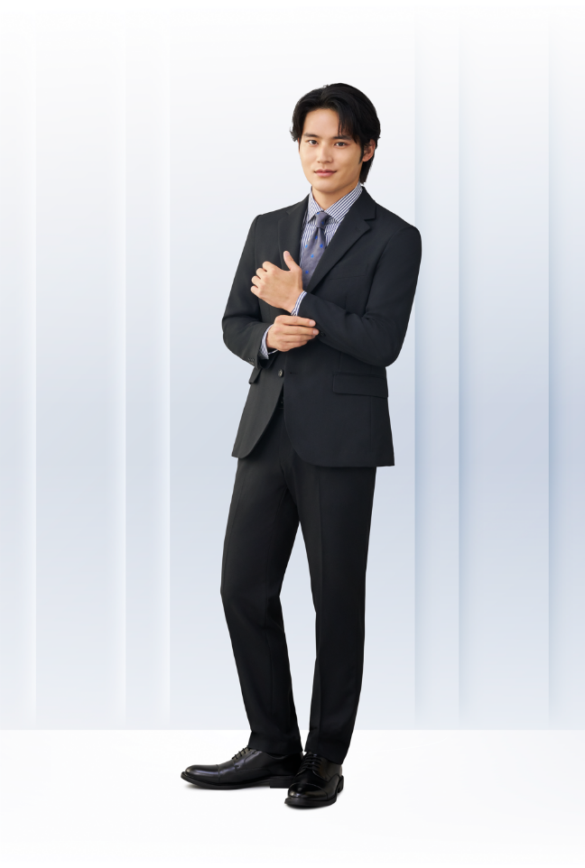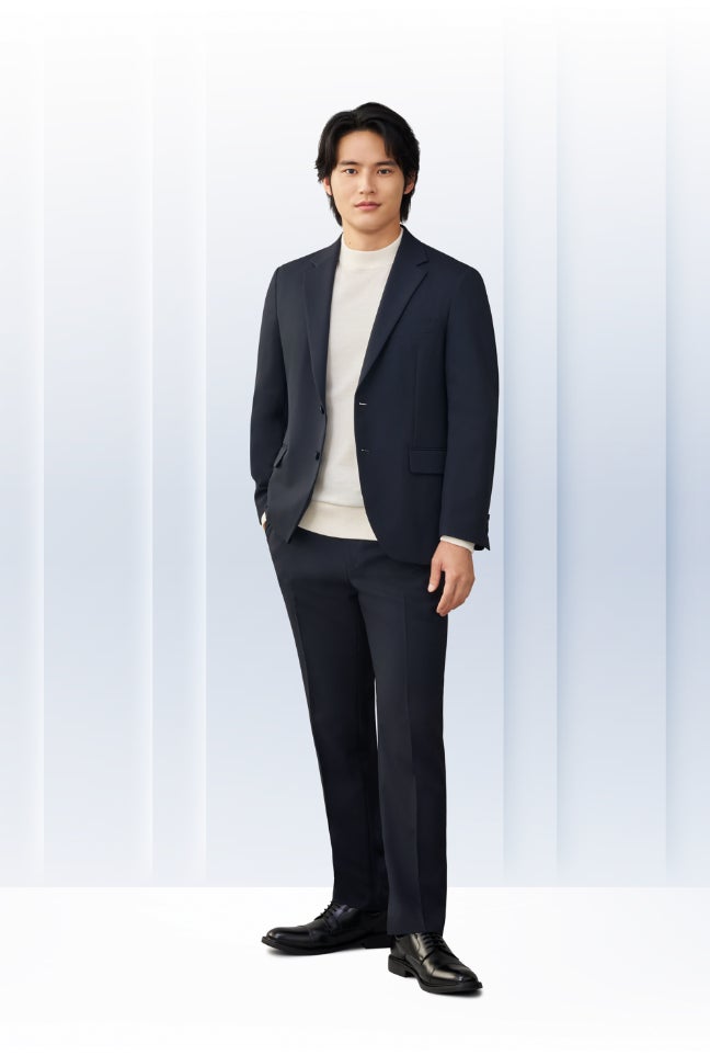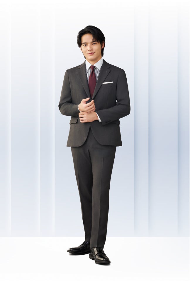 『みんなのスーツ』は、“すべての人に、似合うスーツを。”コンセプトに企画した新しいシリーズです。「これでもいい」ではなく、「これなら着たい」「これなら安心」と感じていただける一着を目指し、軽やかな着心地でありながら、当社がこだわり続けてきた立体的で美しいシルエットを実現しました。タイドアップすればきちんとした印象に、トップスを変えればビジカジスタイルとしても楽しめるなど、さまざまなシーンに対応できる汎用性の高いデザインが特長です。また、すべての商品はお直し不要となりますので、ぜひ店頭であなたにぴったりの『みんなのスーツ』をお試しください。