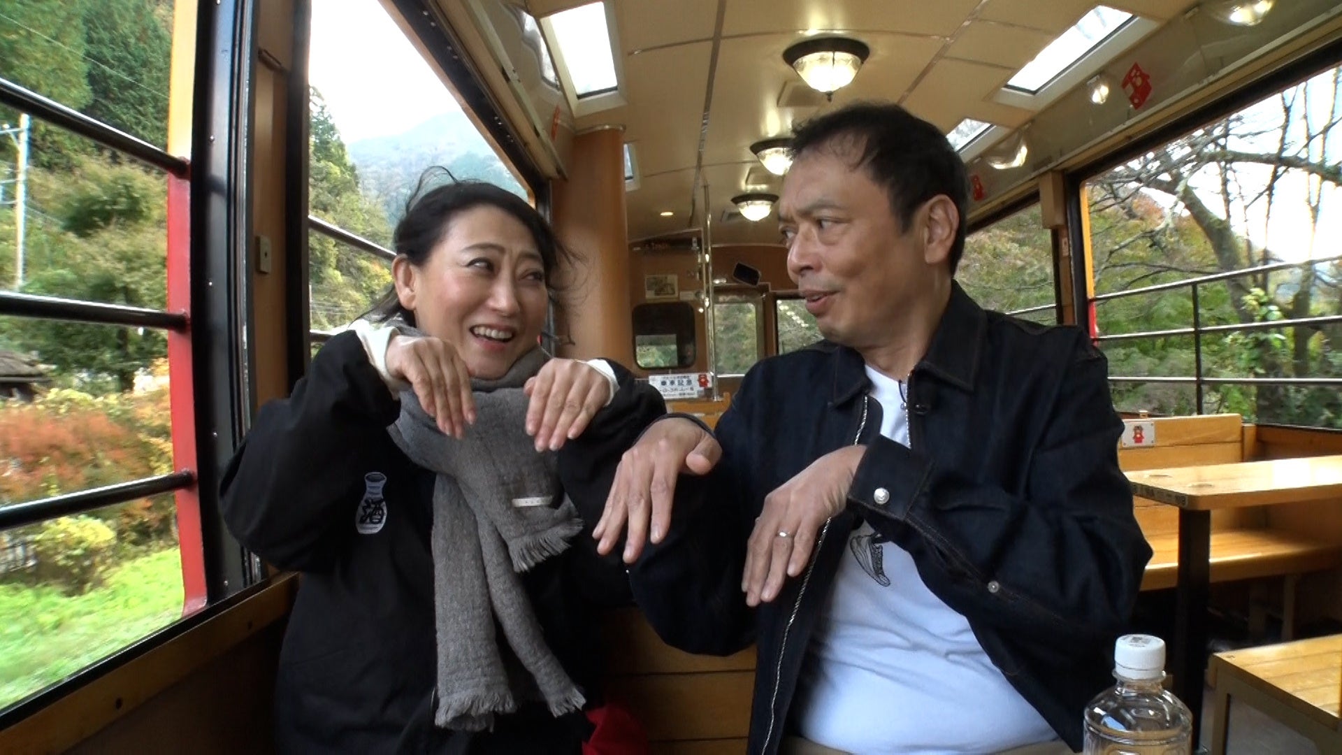 続いて2人が乗るのは、渡良瀬渓谷沿いに約40キロを走る、わたらせ渓谷鐵道。トロッコ列車わっしー号は左右の窓がオープンになっており、渓谷の大自然がダイレクトに楽しめる。2人のために貸切運行された列車に乗ると、礼二はすぐさま運転席を見学。そしてまさかの行動に出る!さらに、運転席の横には、鉄道ファンなら誰でも興奮のある仕掛けが。もちろん、礼二は大はしゃぎだ。長いトンネルに入ると、列車が色とりどりの電飾に光るイルミネーションモードに。幻想的な演出だが、礼二はここでよからぬことを考えてしまい、友近とともに苦笑いする。