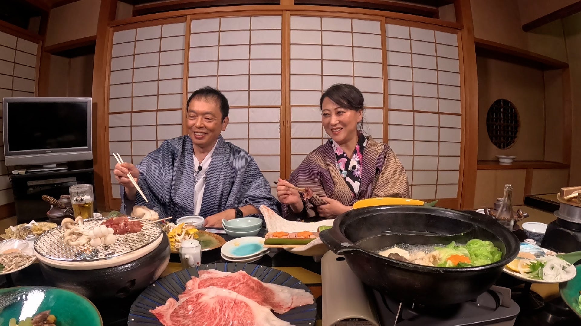 足尾銅山では坑内を見学し、当時の労働者の過酷な労働環境や生活ぶりも学んだ2人。旅はいよいよ最終目的地の宿へ。赤城山のふもとにある秘湯旅館では、ライトアップされた滝を見ながら、2人“水入らず”で露天温泉へ浸かる。絶景に恵まれた旅は、最後も美しい絶景で締めたのだった。