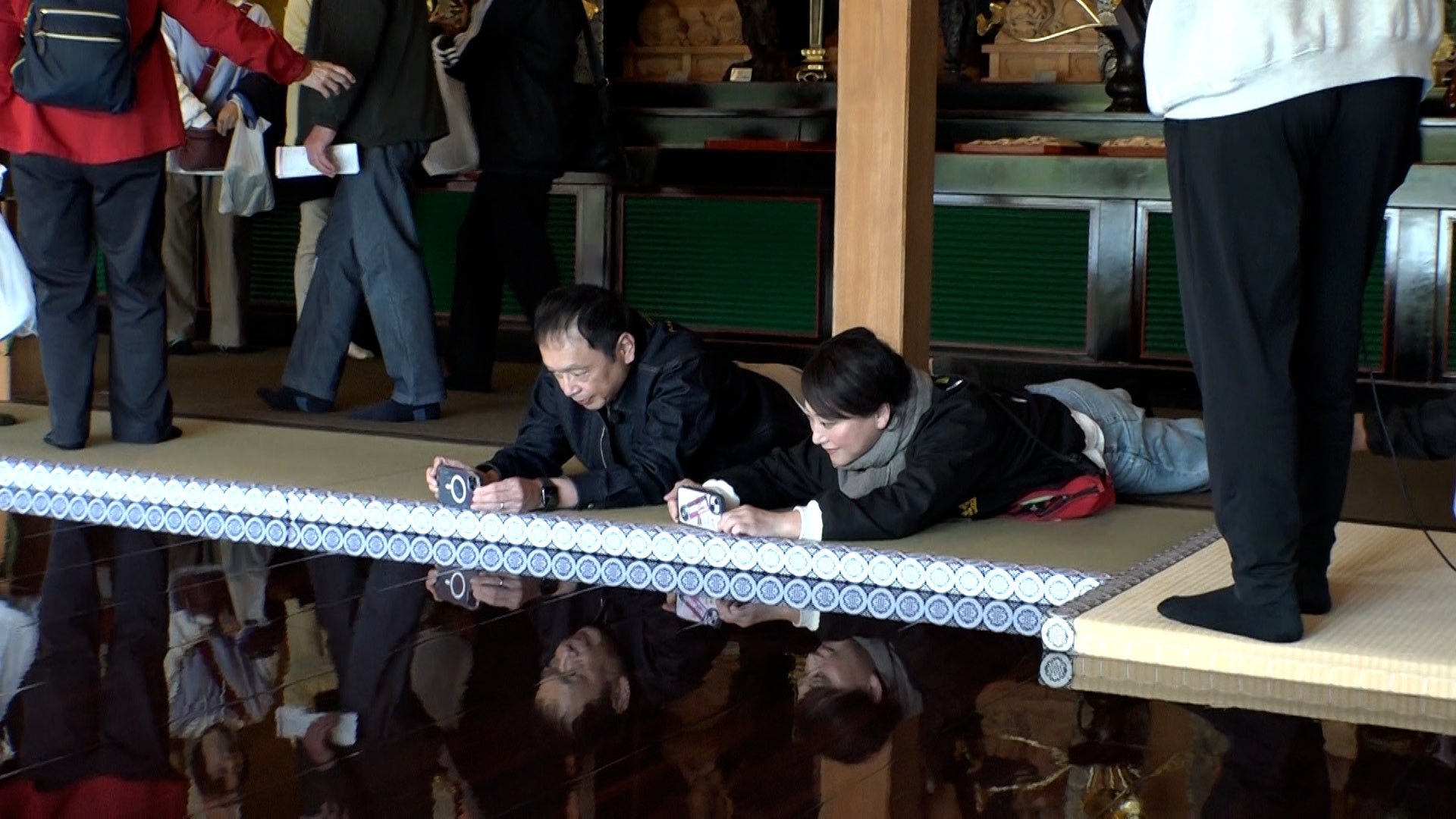 2人を待っていたのは、床が鏡のように磨かれた本堂。漆塗りが施された床面に映し出されていた光景に、2人は思わず息をのむ。記憶だけでなく、記録にも残そうと、スマホを手に取る2人。しかし、友近の狙いはまさかの…。