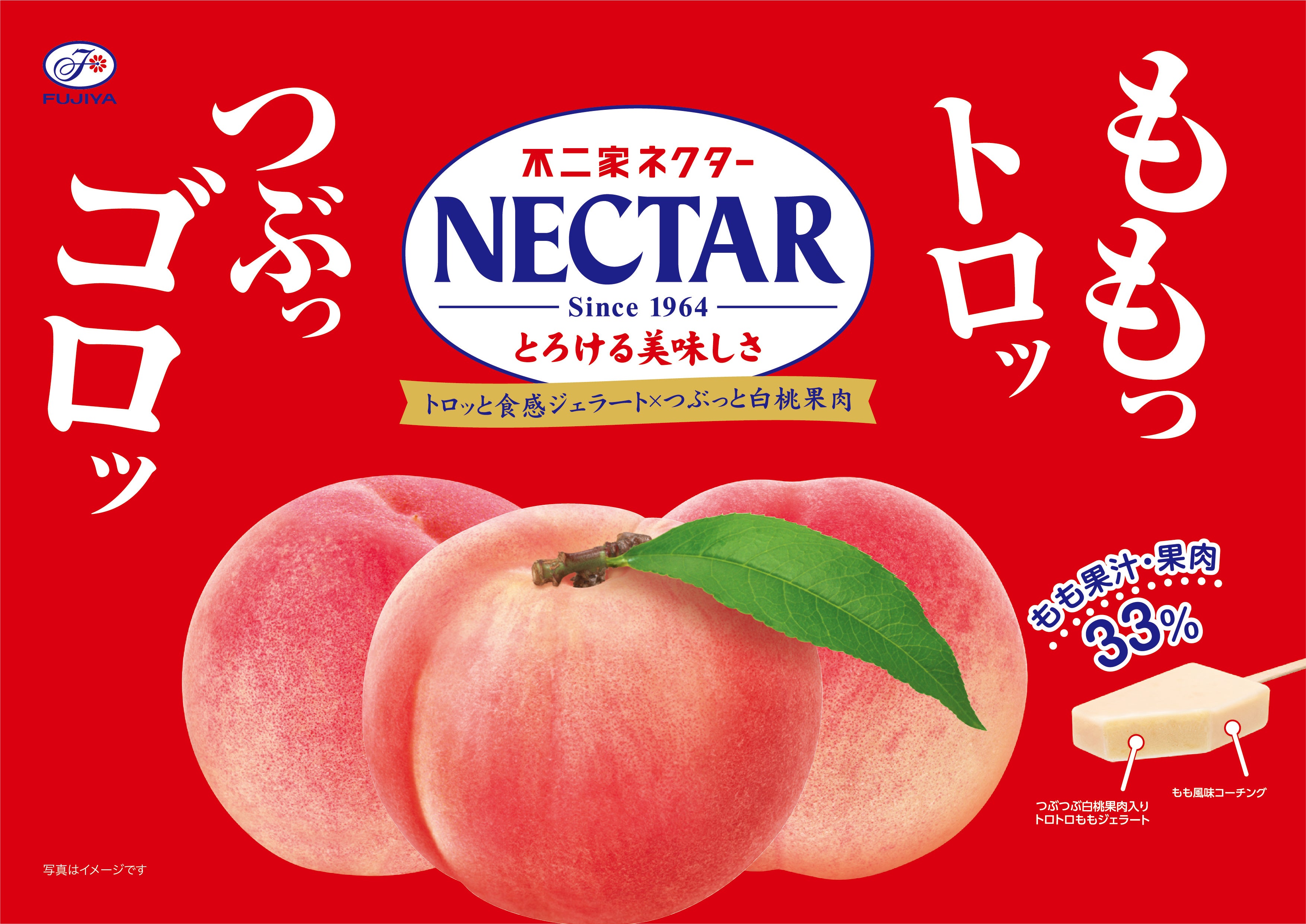 不二家のロングセラー飲料「ネクター」は1964年の誕生以来、多くの皆様から愛され続けている商品です。今回発売する「ももっトロッつぶっゴロッ不二家ネクター」(アイス)は、不二家「ネクター」をイメージして開発した商品です。