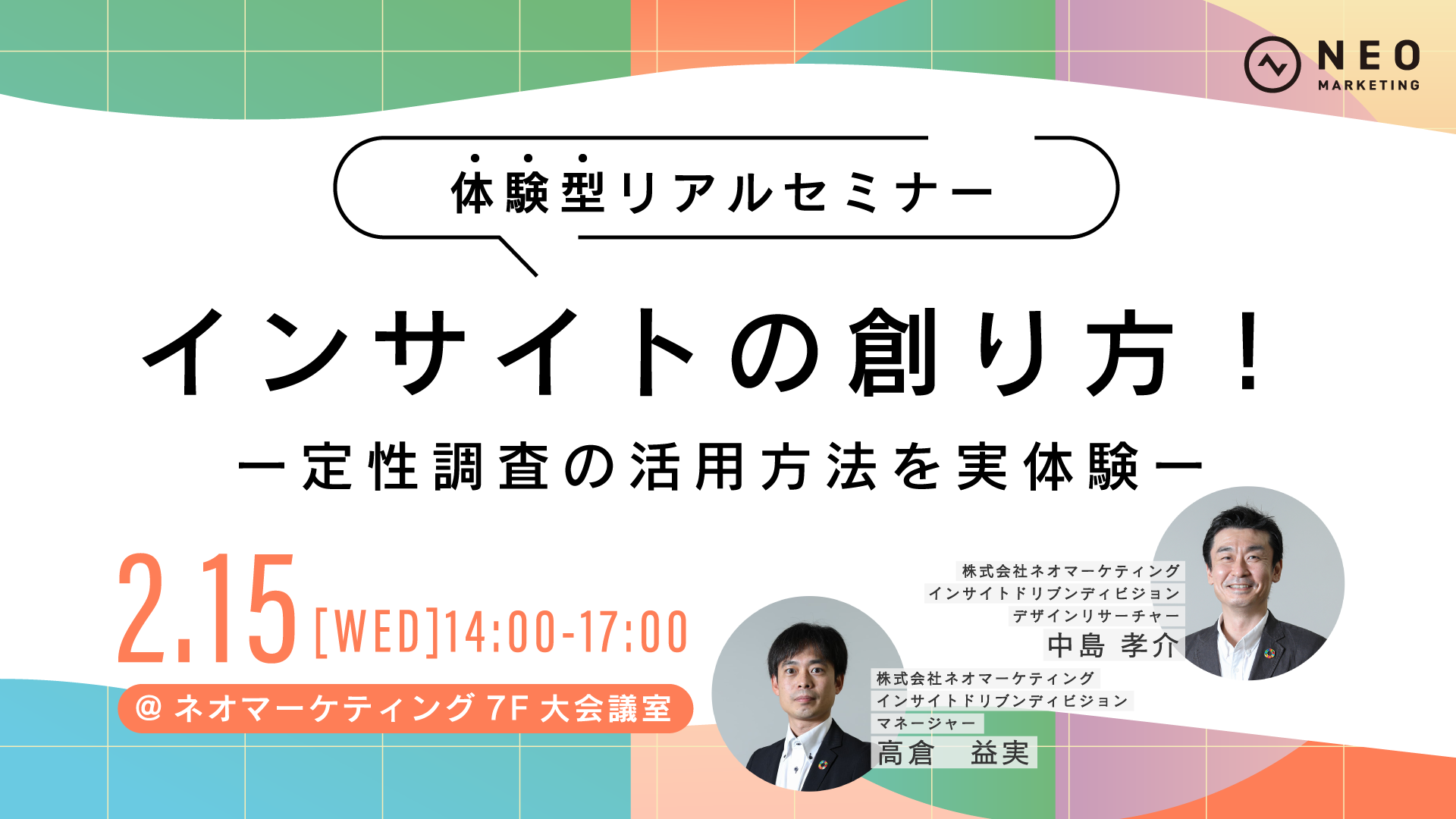 20名様限定!【体験型リアルセミナー in東京】インサイトの創り方!~定性調査の活用方法を実体験~主催:株式会社ネオマーケティング