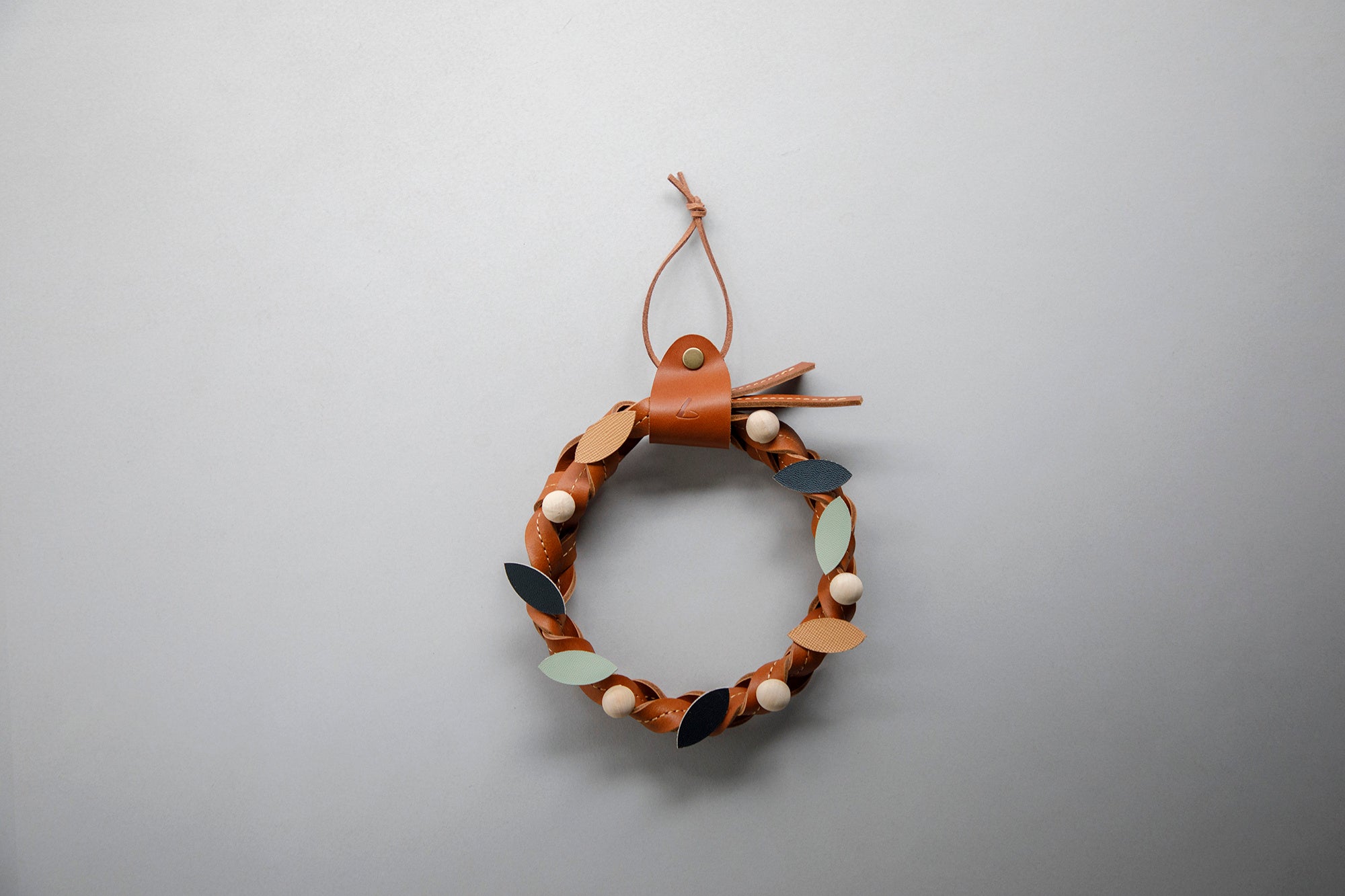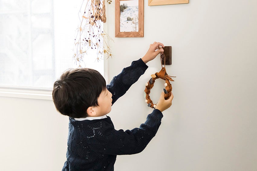 シンプルなデザインのため、何回でも解き直してリボンやドライフラワーなど自由にアレンジも可能。クリスマスシーズンだけでなく、革ならではの経年変化を楽しみながら、1年を通して生活になじむインテリアとして飾っていただけます。