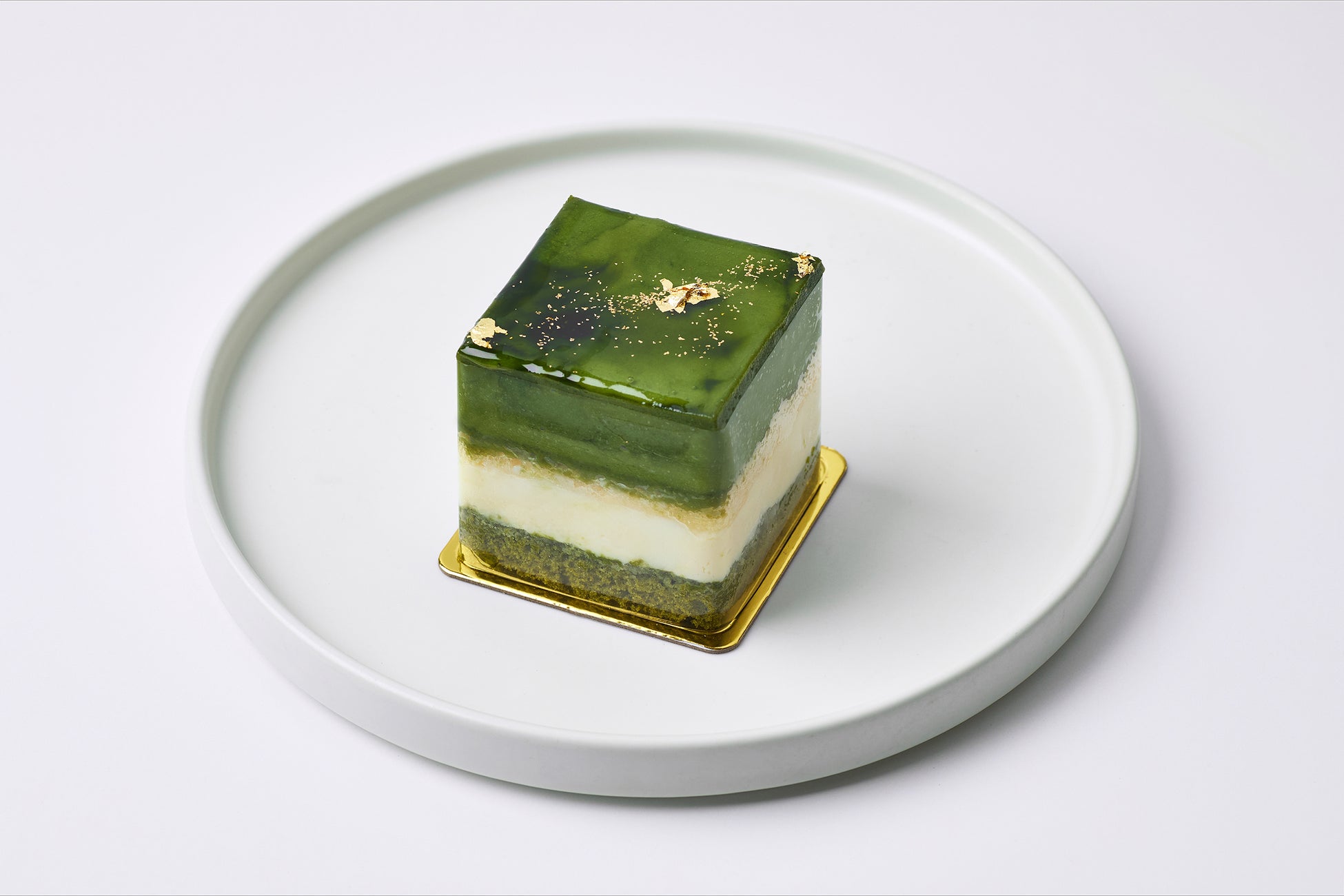 香り豊かな口溶けの良い抹茶のムースと、まろやかなクリームチーズのムース。抹茶をふんだんに使用したスポンジ生地とほろ苦い抹茶のシロップを染み込ませた生地が、抹茶の風味を一層際立たせます。
