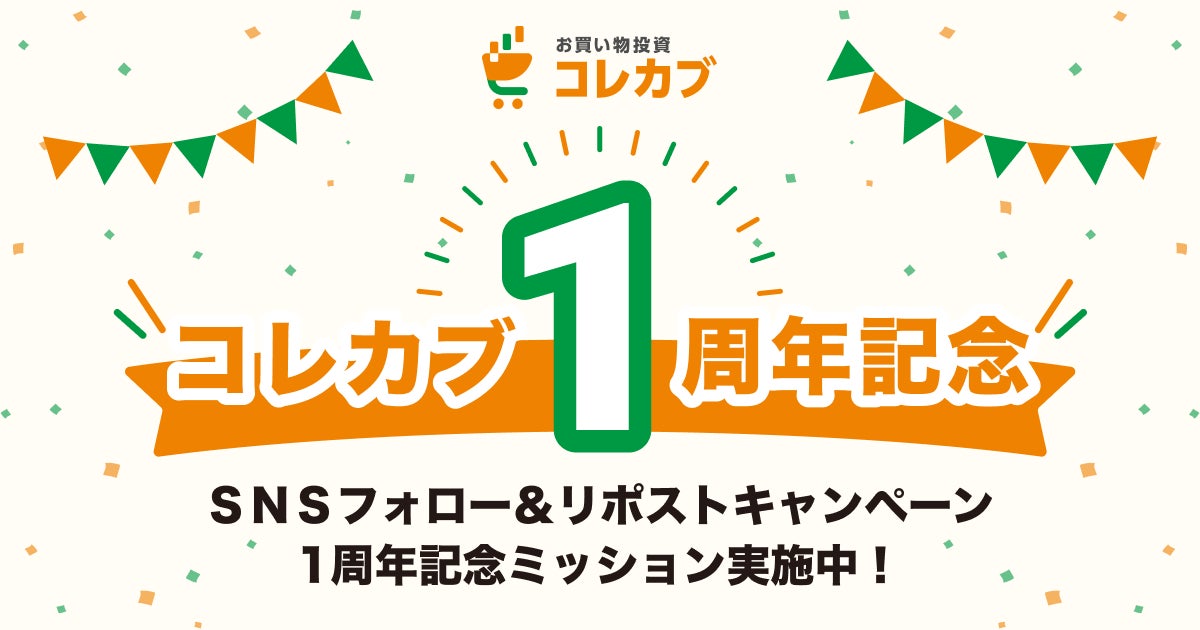 1周年を記念して、多くの方に「お買い物投資コレカブ」を知っていただきたいという思いからSNSフォロー&リポストキャンペーンを開催いたします。