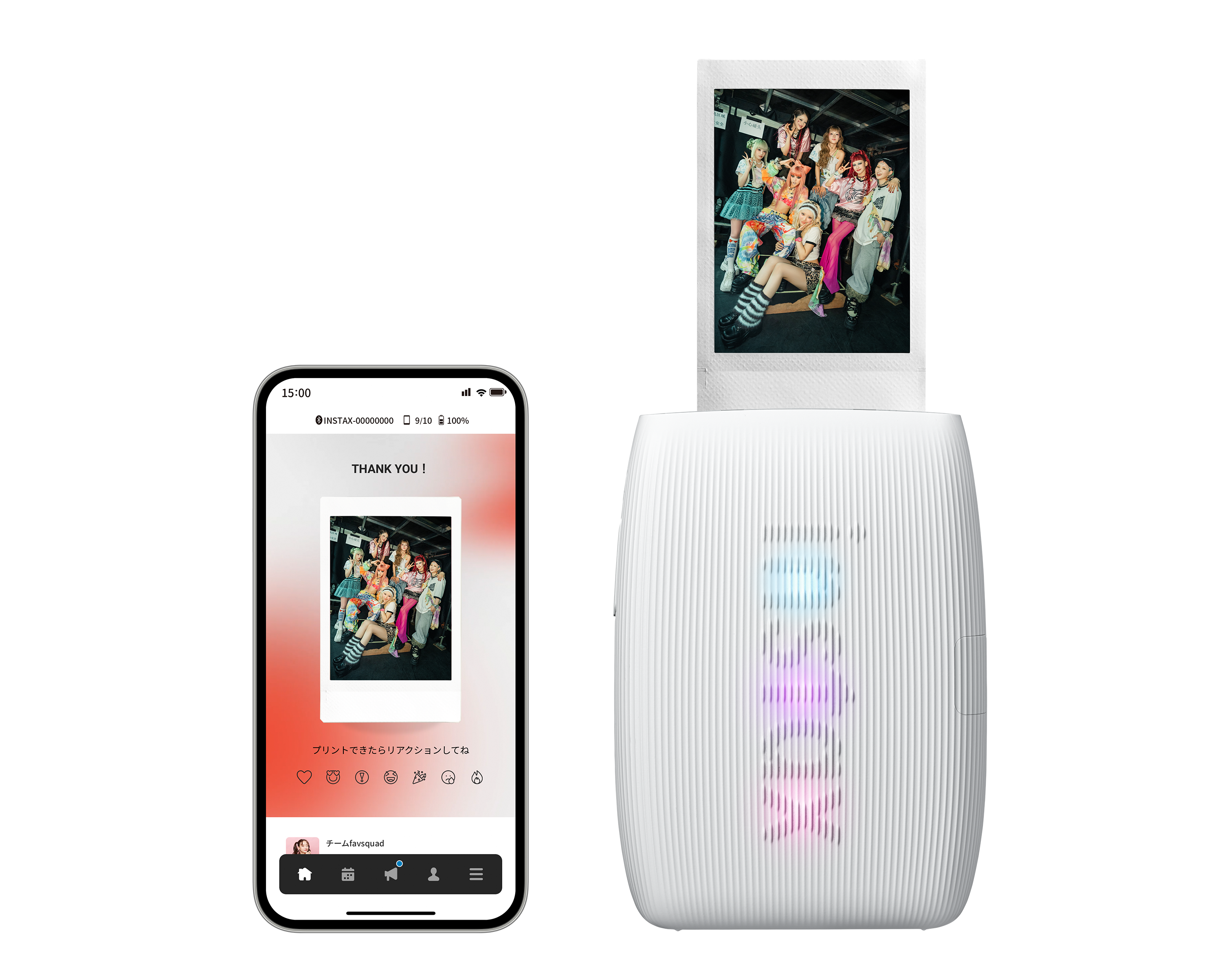 「Favsquad™」では、アーティスト(※4)がファンに届けたい『ここだけの一枚』の画像を「アーティスト用アプリ」を通じて配信すると、「ファン用アプリ」に通知が届き、ファンは画像を購入してチェキプリント™を手に入れることができます。購入できる時間は最大24時間限定で、物理的に距離が離れていても、アーティストと同じ時間を共有し、より身近に感じられる特別な体験を味わえます。「Favsquad™」の楽しみ方やコラボ企画の最新情報は、特設WEBサイトにて更新予定です。