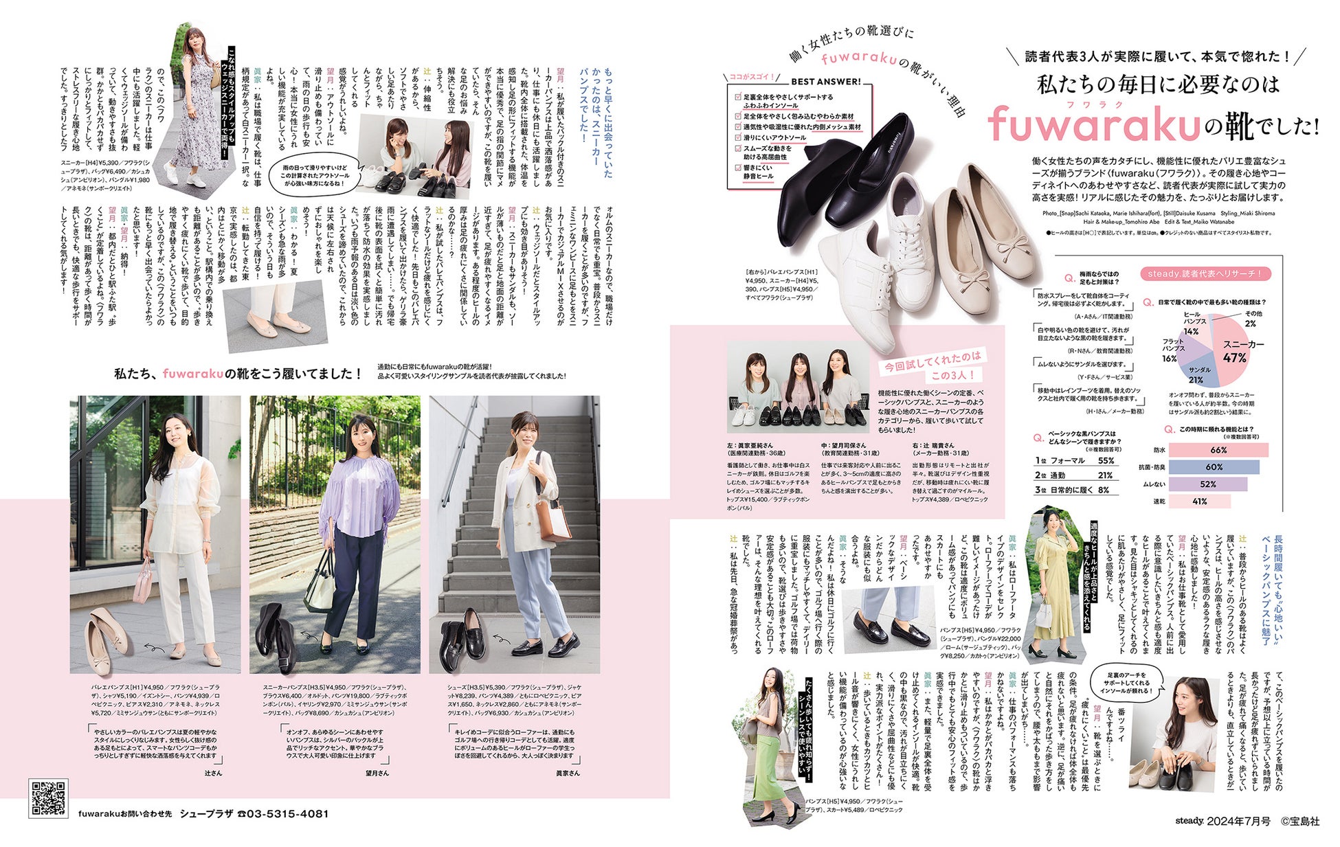 働く女性の靴選び! “私たちの毎日に必要なのは「fuwaraku」でした!” 高機能パンプス「fuwaraku(フワラク)」の魅力を宝島社発行のファッション誌「steady.」読者代表が検証しました。