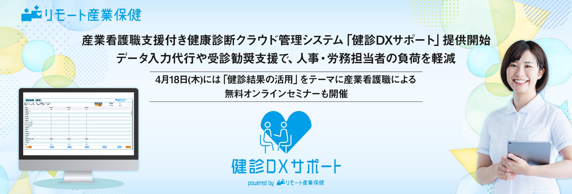 ~4月18日(木)には「健診結果の活用」をテーマに産業看護職による無料オンラインセミナーも開催~