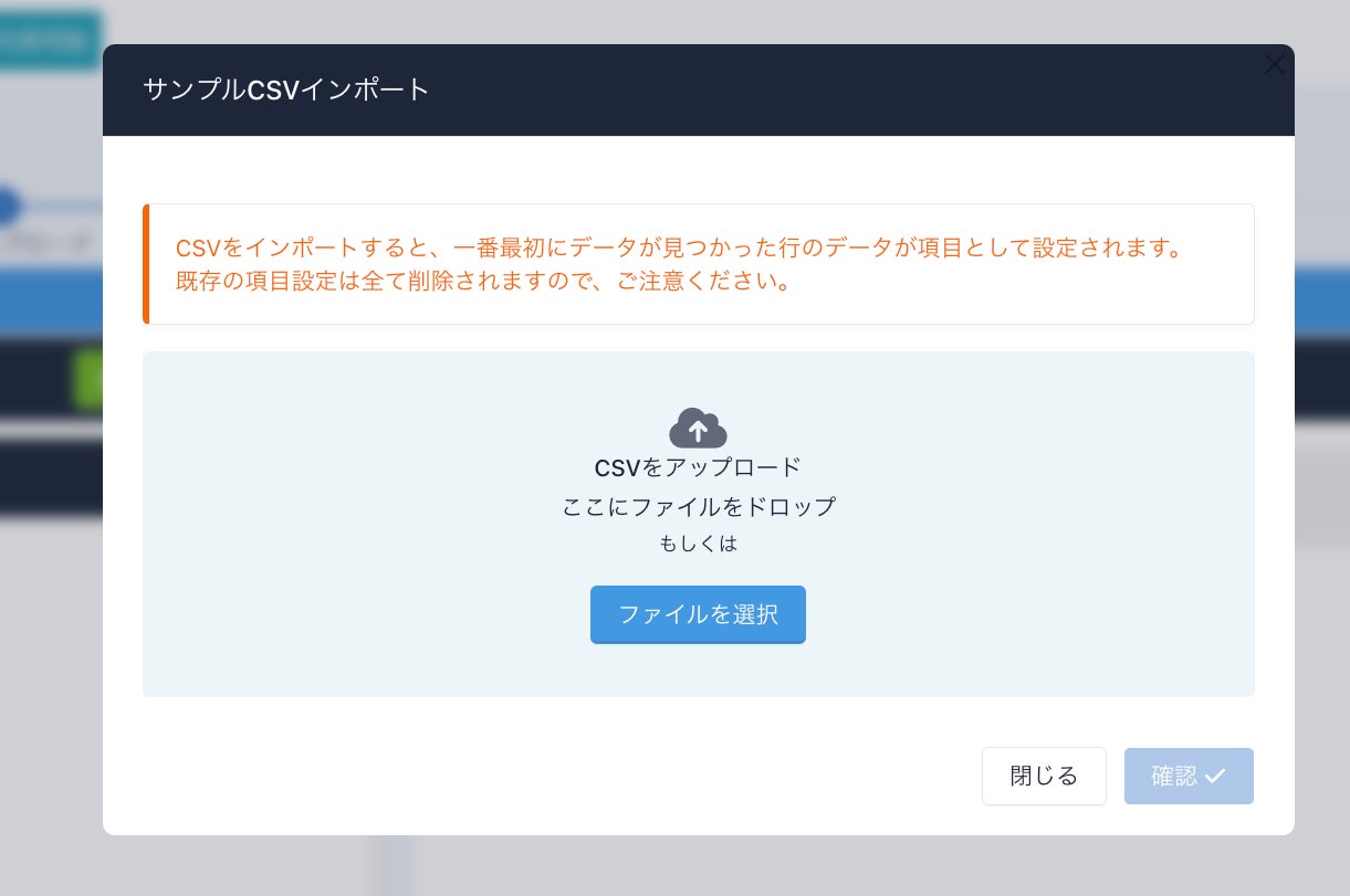 変換対象のサンプルのCSVのカラム名を読み込んで、変換後のカラム名を指定する機能です。