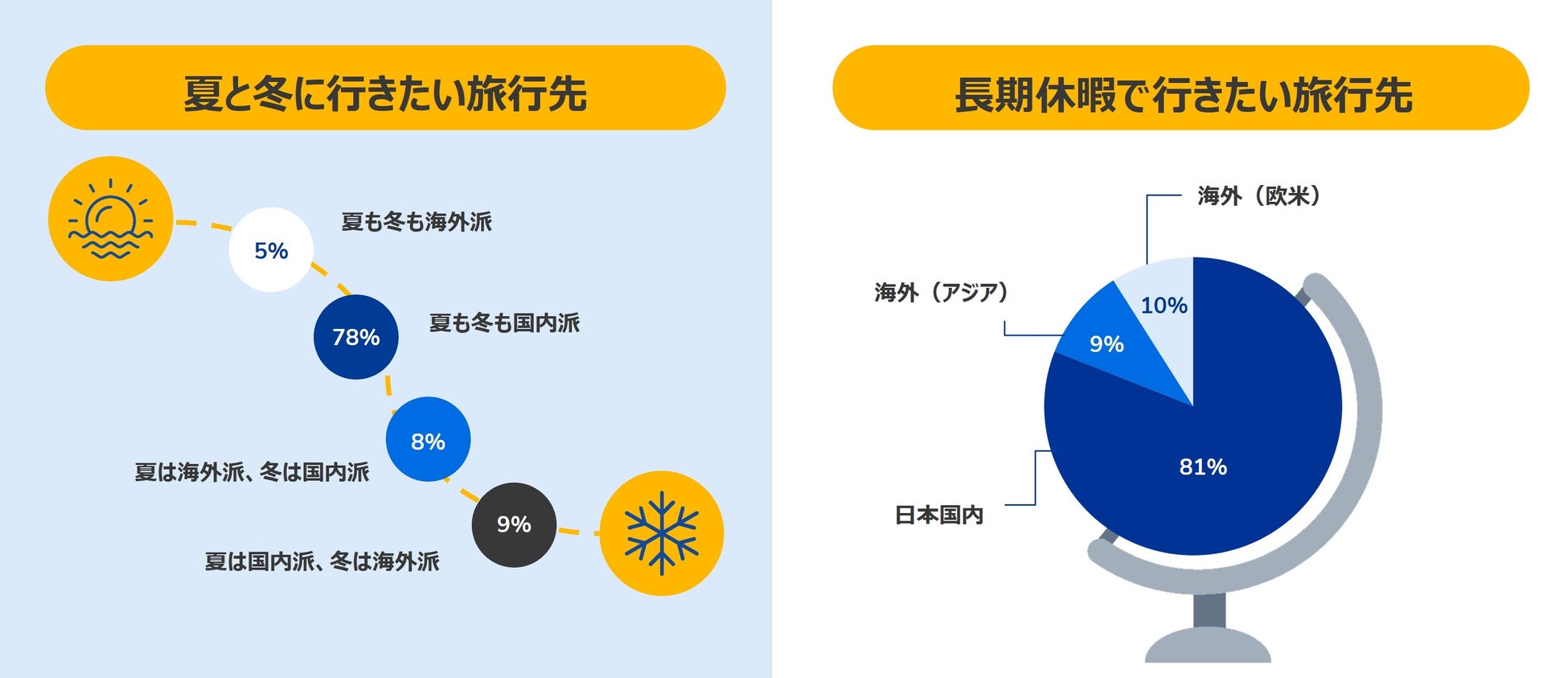 日本人の旅行意欲は、総合的な安心感指数は11の国のうち9位でした。また、旅先については、季節や長期休暇に関係なく国内旅行を好む傾向が強いことも調査から見えてきました。