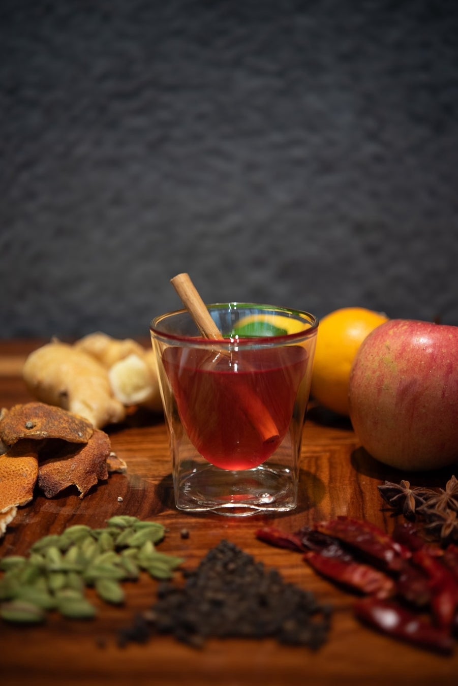 オレンジジュースにシナモンやスターアニスの香りを移しながら煮込んだ、からだの芯から温まるホットドリンクです。