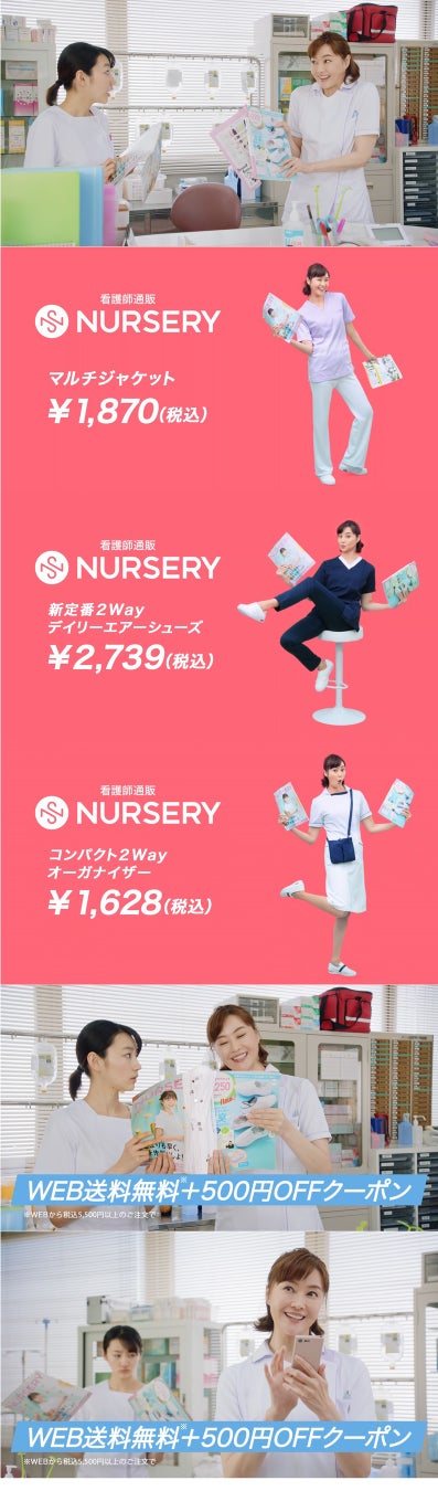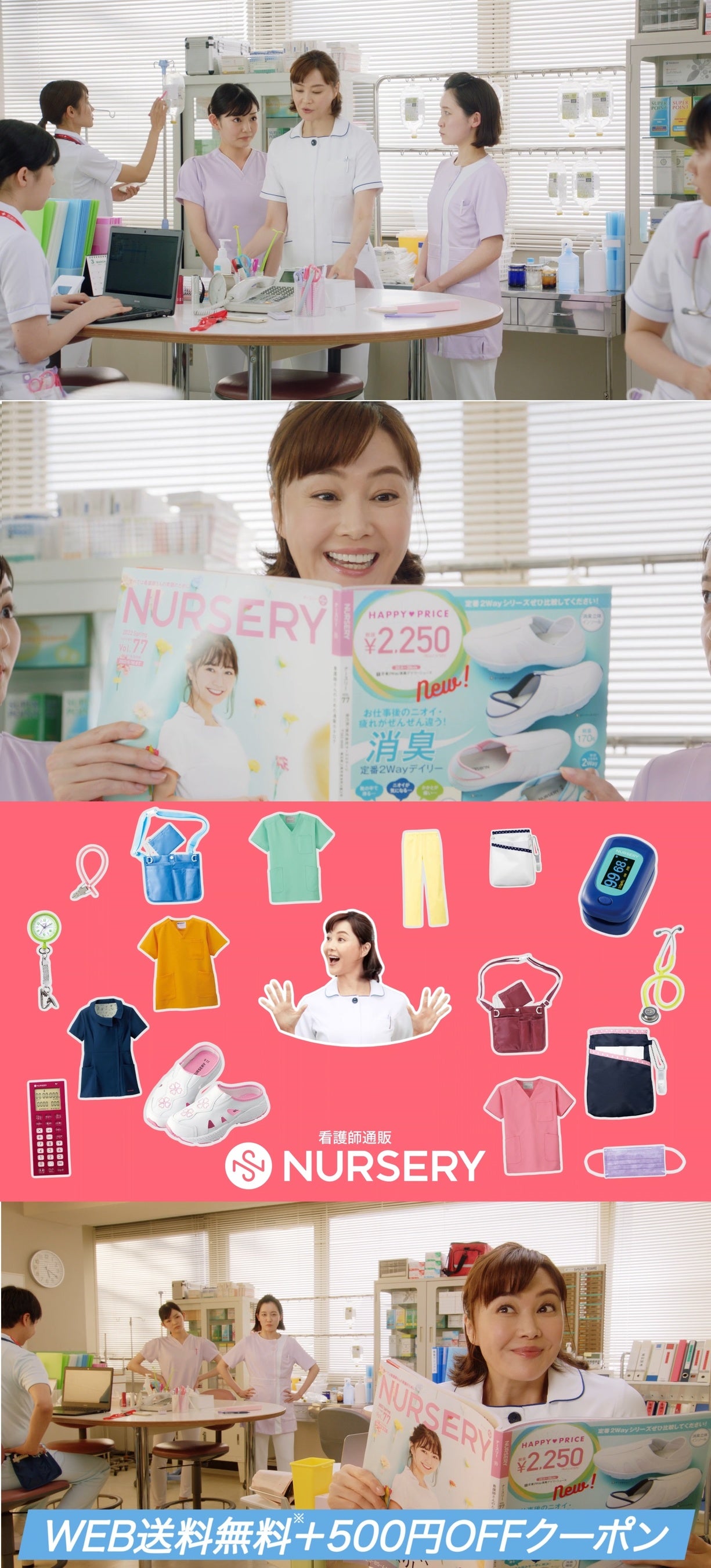 観月ありささんがおちゃめな“令和版ナース“を熱演! 看護師通販「ナースリー」新CMでカタログを真っ二つに!