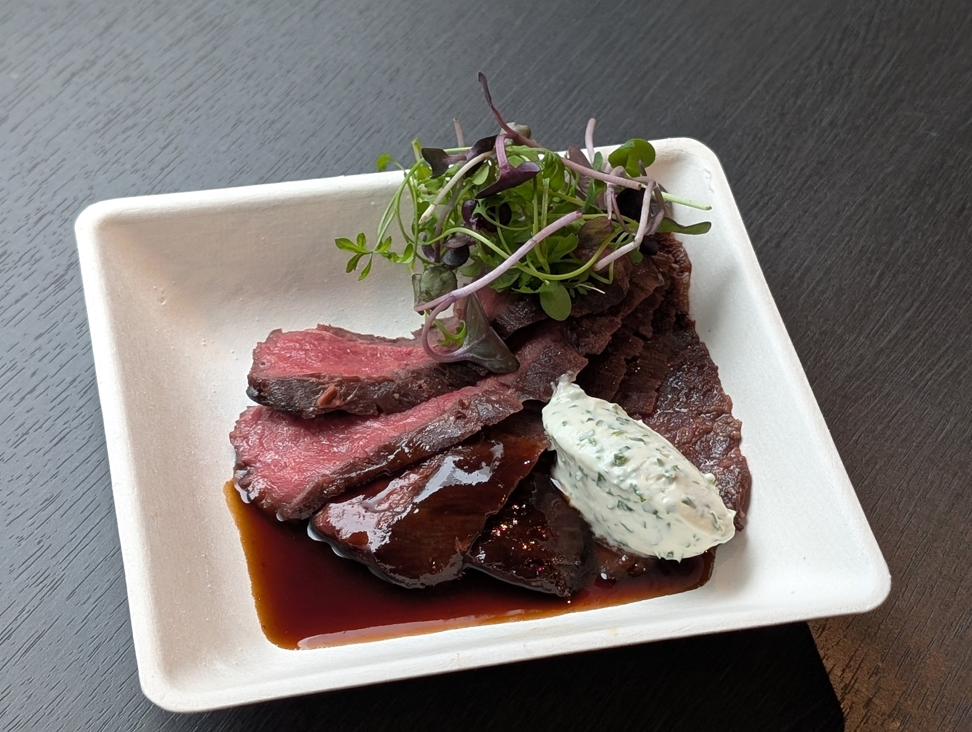 「ハラミステーキ ~香草サワークリームとともに~」(写真:中央)