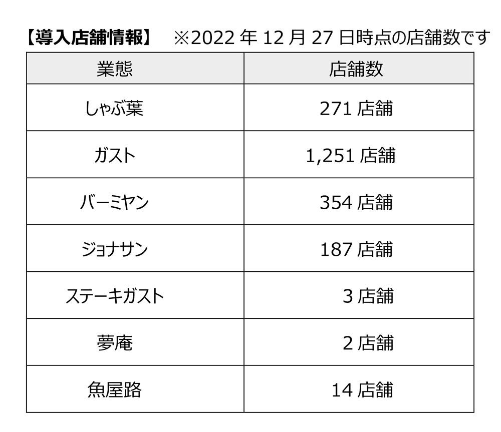 株式会社すかいらーくホールディングス(本社・東京都武蔵野市、代表取締役会長兼社長・谷 真、東証プライム:証券コード3197)は、2021年8月より、フロアサービスロボットの導入をスタートし、2022年12月27日に 「ガスト」「しゃぶ葉」「バーミヤン」をはじめとする全国約2,100店舗に3,000台のロボットの導入を完了いたします。