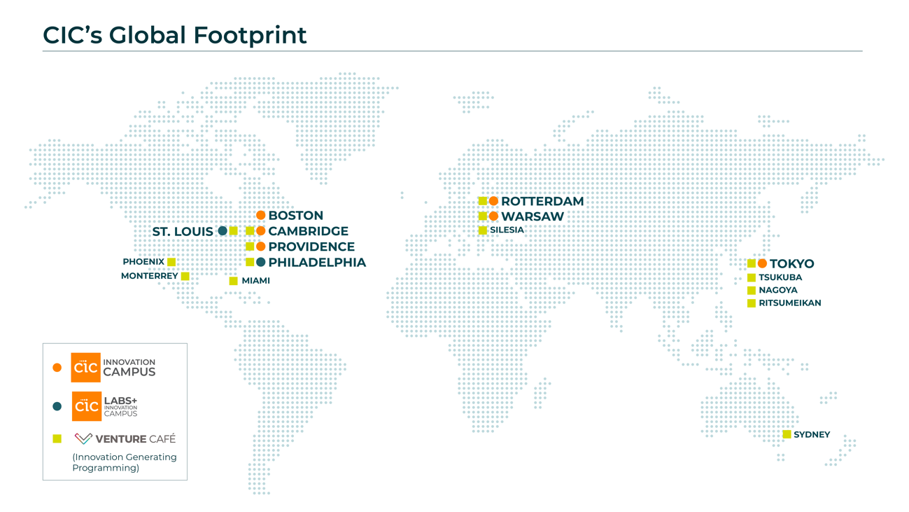 CICの目標は、イノベーションを通してこの世界をより良き世界へと変えていくことです。地球温暖化や食糧安全保障や健康など、世界の主要な問題を解決することができる新しい技術やアイデアを、いち早く実用化させ、世界に広めていくために、イノベーションキャンパスをつくりました。Google Android と Hubspotは、CIC初期にCICから生まれ大きな成功を遂げた2つの代表的な企業です。グローバル組織であるビル&メリンダゲイツ財団は、CICをホームと呼んでいます。