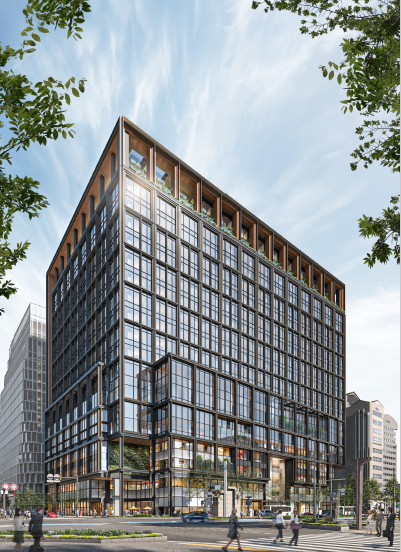 (仮称)新福岡ビルは、“創造交差点 meets different ideas”をコンセプトに、多様性と偶発性に満ち、新たなビジネスや文化を生み出す、オフィス・商業・ホテル等の大型複合ビルです。