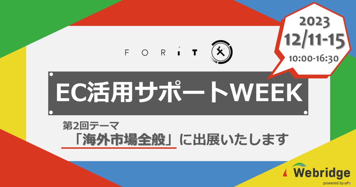 フォーイット、「EC活用サポートWEEK(第2回テーマ:海外市場全般)」に出展いたします(2023/12/11-12/15)