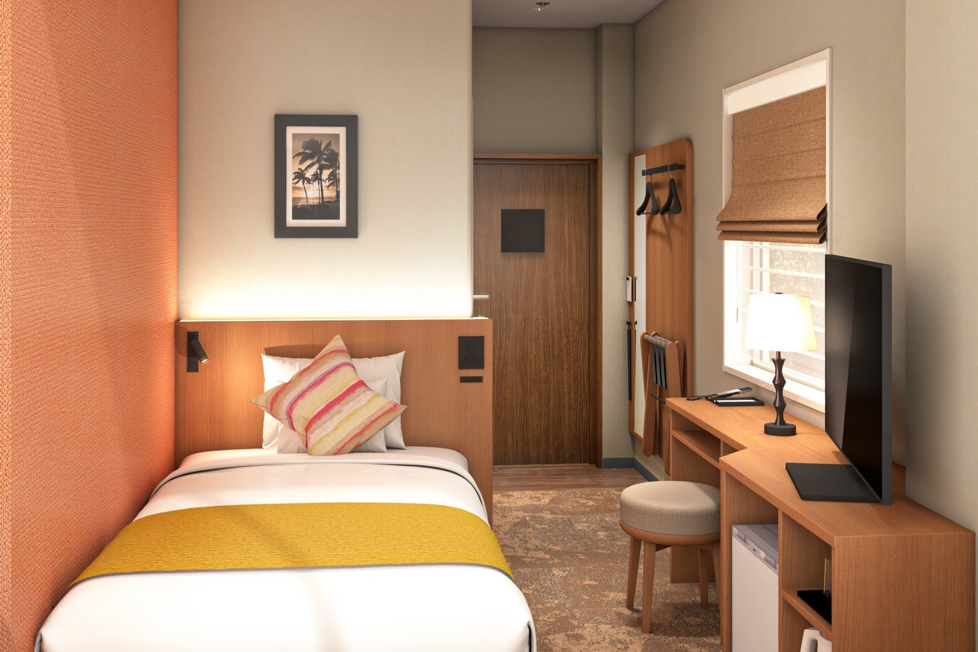 コンセプトは「癒しへと誘う、アロハ・コンフォート」。すべての客室をベッドタイプに統一し、2名様分のベッドを常設。さらに2名様分の布団もご用意できるため、最大4名様までご利用いただけます。落ち着いた色調とモダンなインテリアでまとめ、ハワイの自然を感じさせる優しい素材と照明が織りなす空間で、ゆったりと流れる時間をお楽しみください。