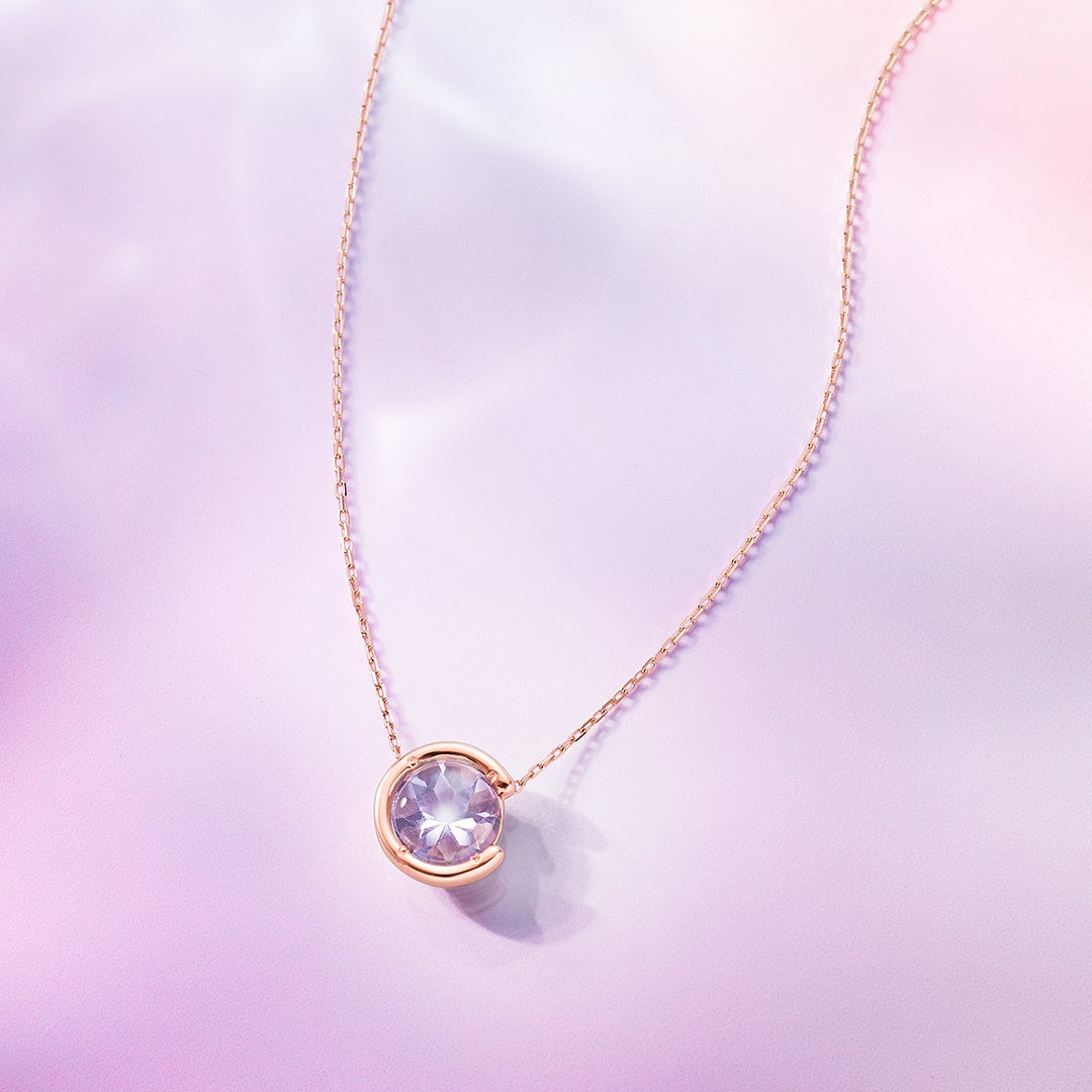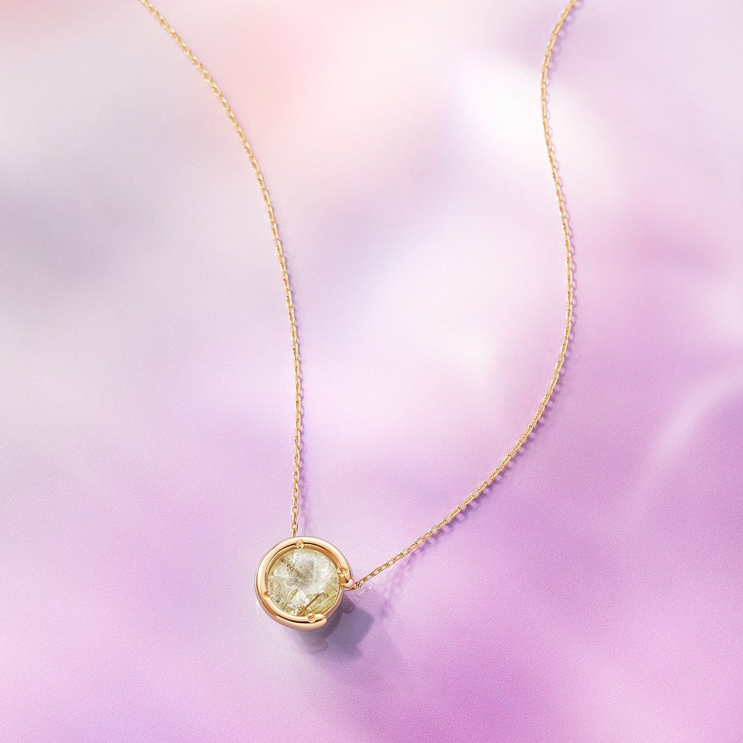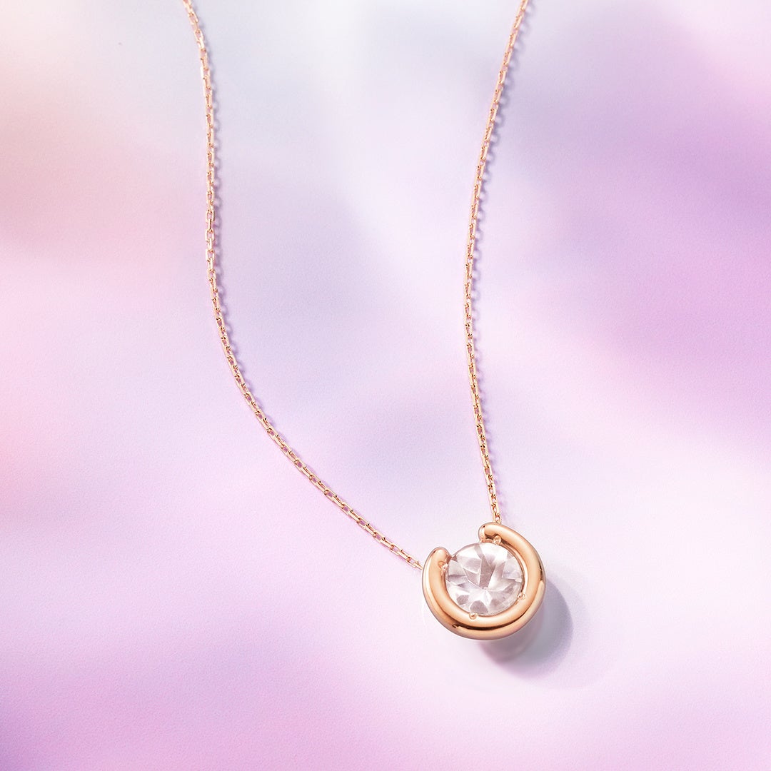 柔らかなピンクゴールドカラーの地金に、「美」や「愛」、「美しさ」を石言葉にもつローズクォーツを配したネックレスは、可憐で洗練された印象に。K10の「C」モチーフの上質な艶めきに「真実の愛」や「誠実」、「癒し」の意味をもつアメジストがきらめくネックレスも、ストーンの輝きを魅力的に引き出すオリジナルカットが目を惹く仕上がりになっています。K18イエローゴールドの地金に、ストーンの中に繊細な金紅石が光る「金運」や「成功」が石言葉のルチルクォーツを留めたネックレスは、身に着ける人の胸元を幻想的でリュクスな輝きで包みます。
