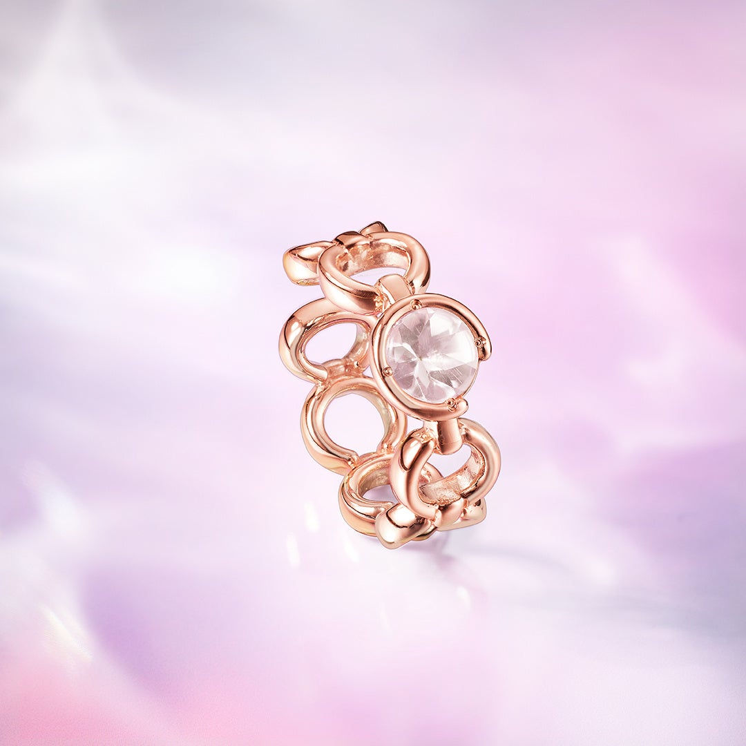 さらに、「C」モチーフが連なるようなデザインのカフリングも登場。ローズクォーツの優しいきらめきに、あなたらしい魅力を重ねて。