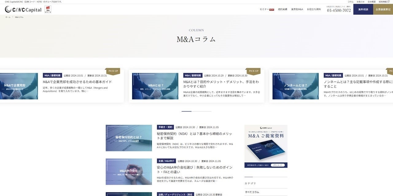 株式会社CINC(本社:東京都港区、代表取締役:石松友典、以下CINC)の子会社である株式会社CINC Capital(所在地:東京都港区、取締役 執行役員社長:阿部泰士、以下CINC Capital)が、M&Aに関する情報を総合的に発信する新メディア(https://cinc-capital.co.jp/column/)を開始したことをお知らせします。