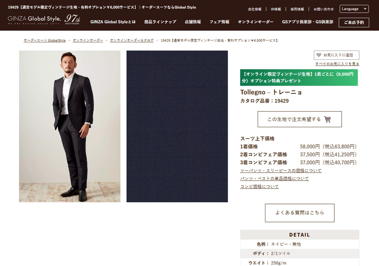 オーダースーツ専門店グローバルスタイルが「オンラインオーダーサービス」をアップデート!ご自宅でもスーツ・シャツのフェア価格がひと目でわかる!