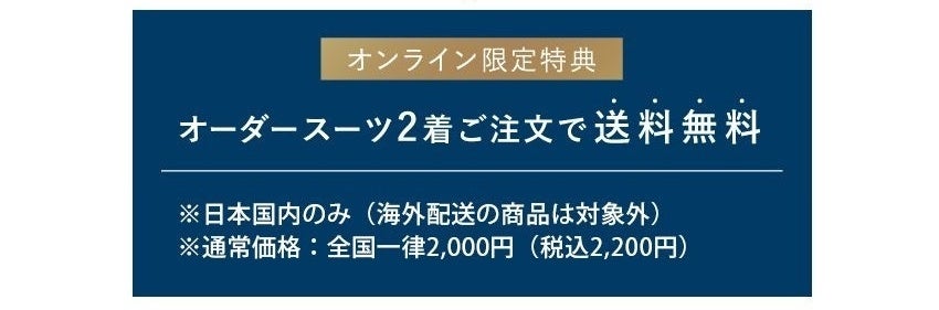配達サービスは通常有料ですが、オンラインオーダーサービス限定特典として、スーツ2着以上のご注文で「送料無料」になります。