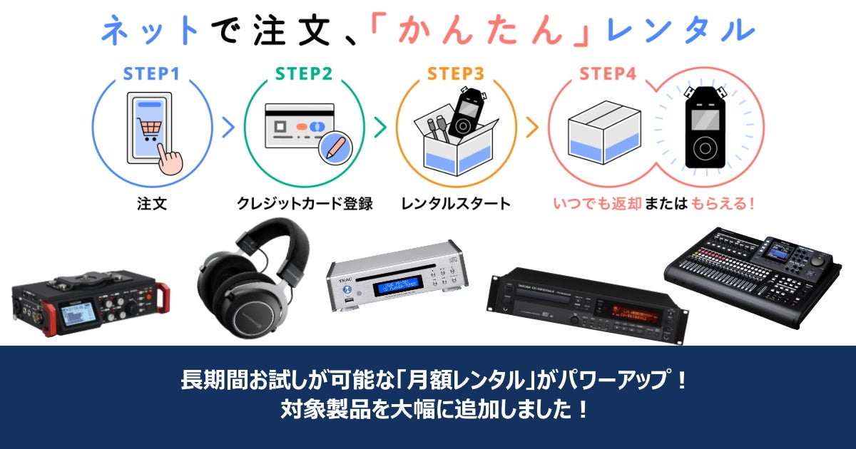 ティアックストアの貸出サービスがさらにパワーアップ!長期間じっくりお試しが可能な「月額レンタル」ラインナップをさらに追加!