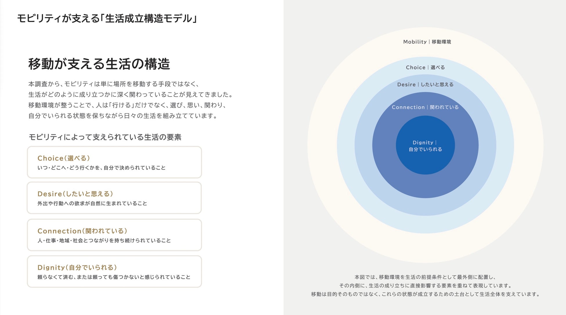 移動を、手段から生活の成立条件へ再定義。選ぶ・願う・関わる・自分であるを支える構造モデルを提唱