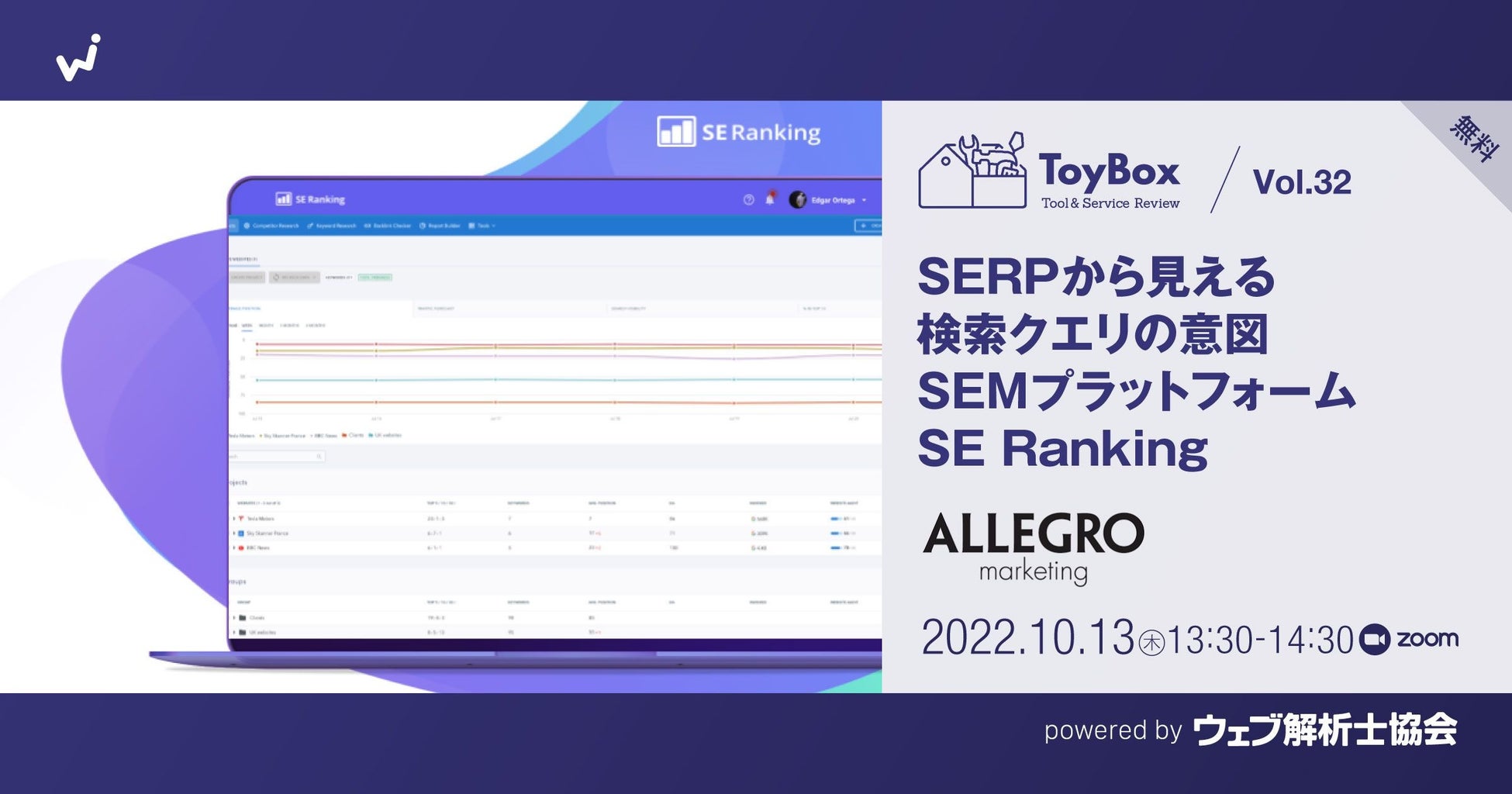 2022/10/13(木)13:30 - 14:30 【ToyBox】Vol.32【無料】SERPから見える検索クエリの意図 SEMプラットフォームSE Rankingツール活用