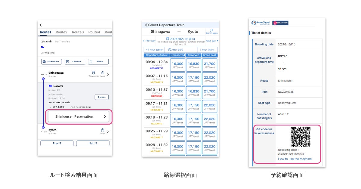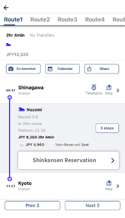 ・株式会社ナビタイムジャパンが提供する「Japan Travel by NAVITIME」サービスから遷移することにより、ルート検索結果からシームレスに全国のJR新幹線、JR在来線を予約可能。