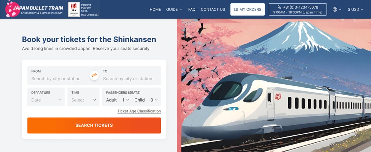 「JAPAN BULLET TRAIN」Webサイトイメージ